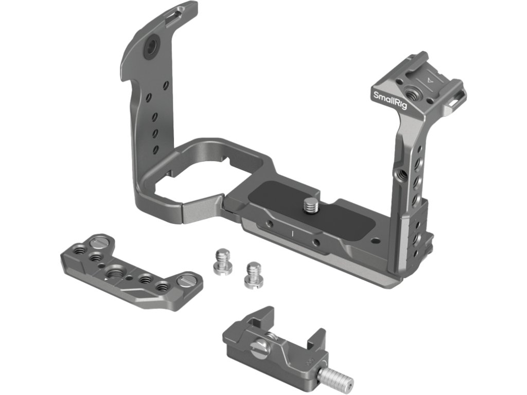 În plus, carcasa are găuri filetate încorporate de 1/4"-20, găuri de poziționare ARRI de 3/8"-16, găuri de poziționare 1/4"-20, o priză QD și o gaură pentru curea și poate fi extinsă cu accesorii precum SmallRig Magic Arm.3873, mâner superior2165, clemă de tijă3598, curea de umăr QD, curea de mână3848și curea de umăr2428pentru creație profesională.