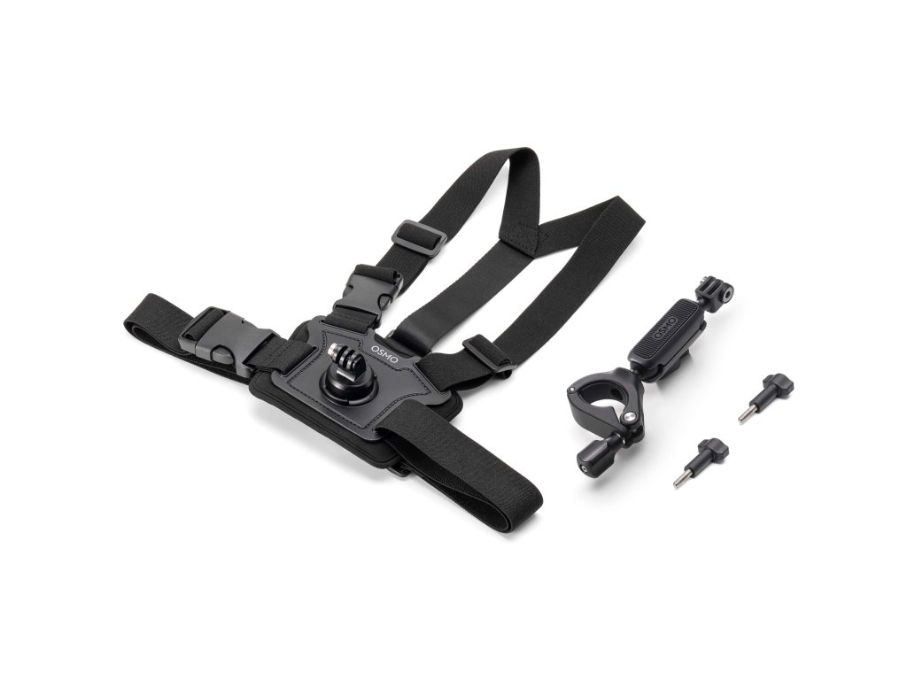 Un set de suporturi pentru camerele DJI Osmo Action. Atașați camera la piept sau la ghidon, astfel încât să vă puteți concentra asupra călăriei și să rămâneți în momentul de față. Include suport pentru cureaua de piept Osmo Action, suport pentru ghidon Osmo Action și șuruburi de blocare Osmo pentru a monta camera pe piept sau pe ghidon, permițându-vă să concentrați-vă pe conducere și rămâneți în momentul de față.