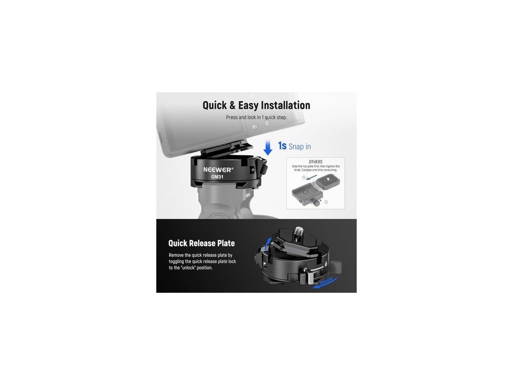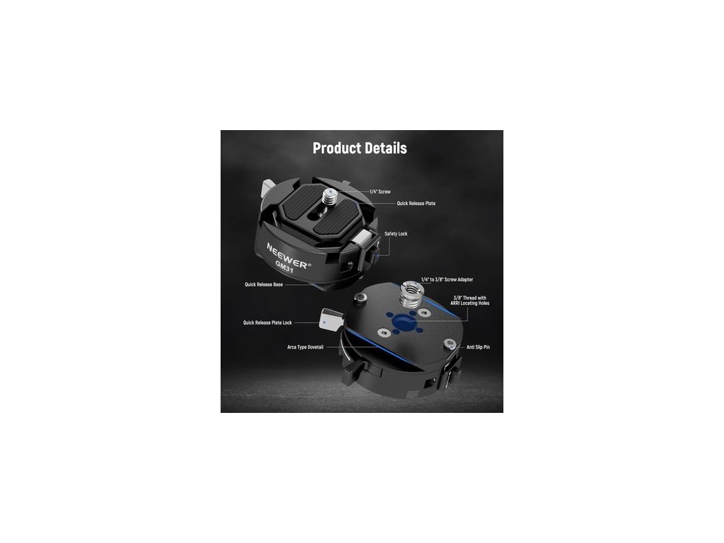 Neewer GM31 Placă cu eliberare rapidă și Kit de bază pentru trepied, Blocare automată tip Arca Square, Placă de montare pentru cameră QR cu clemă pentru camerăParametri suplimentari