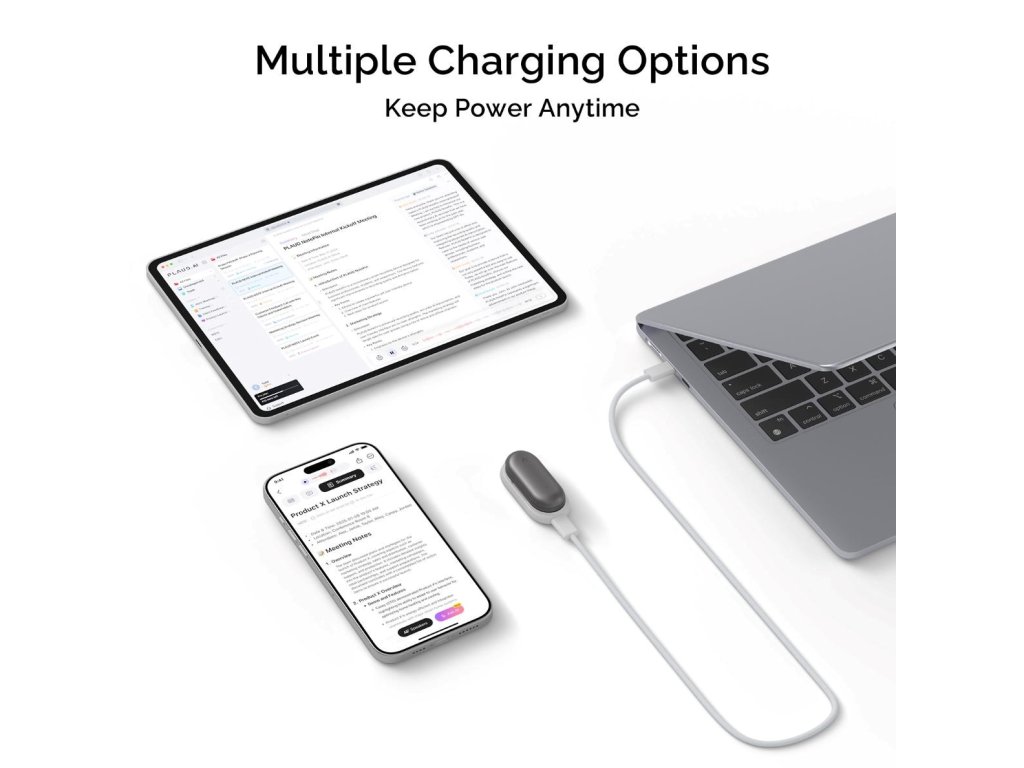 Stația de încărcare și cablul din acest set sunt concepute pentru o încărcare stabilă și rapidă a dispozitivului Plaud Note Pin. Conectorul USB-C permite conectarea ușoară la un laptop, o baterie externă sau un încărcător. Setul este o soluție ideală ca accesoriu de schimb sau ca încărcător de rezervă pentru birou sau geantă.
