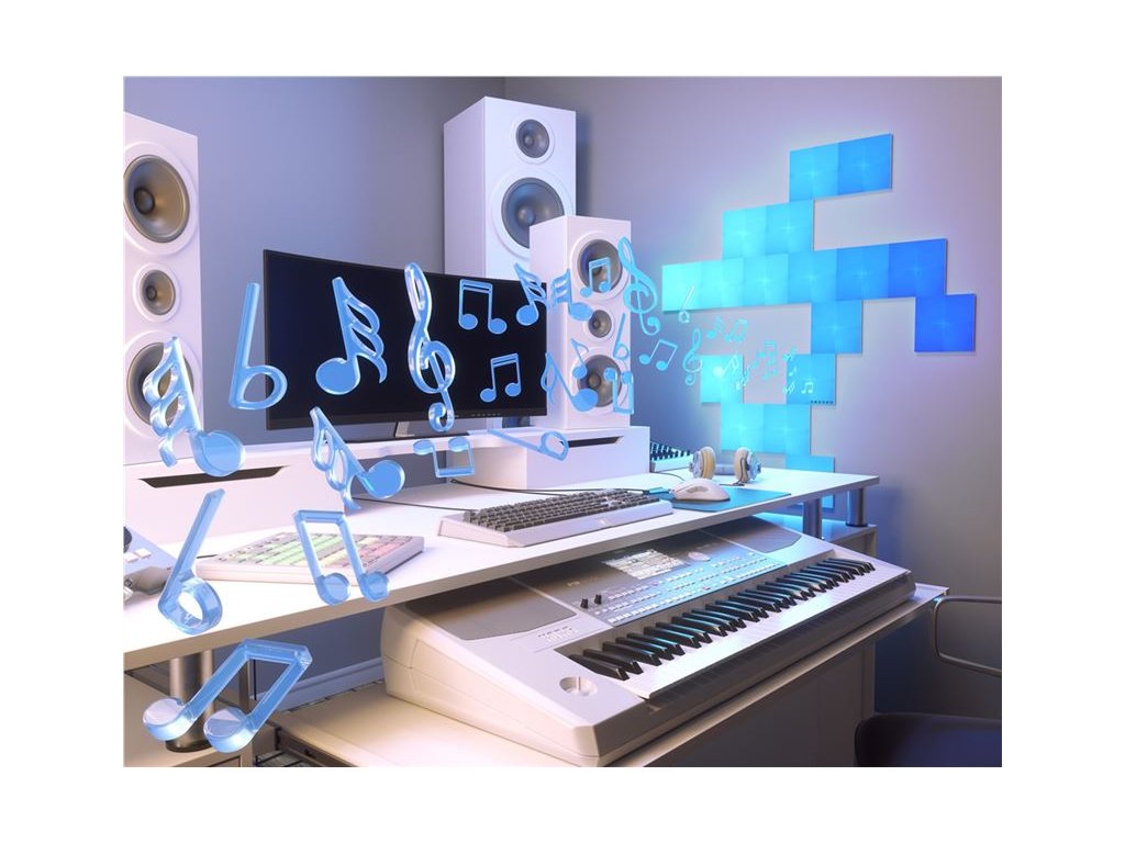 - Ritmul vă permite să urmăriți sunetul, să potriviți vizual muzica cu animații colorate proiectate pe panouri și să creați o simfonie de lumini și muzică.