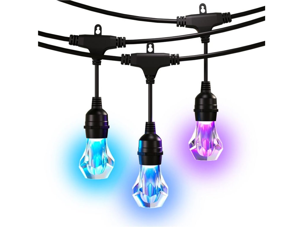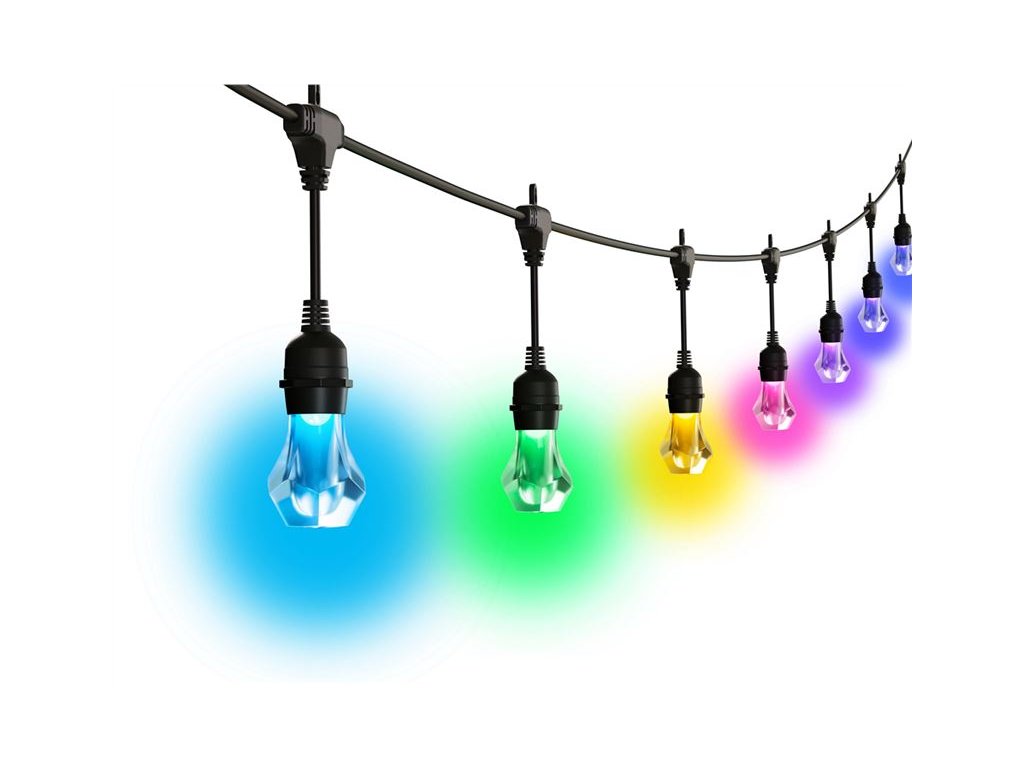 - Iluminează-ți spațiile exterioare cu aceste ghirlande luminoase multicolore pentru exterior, compatibile cu Smart Matter
