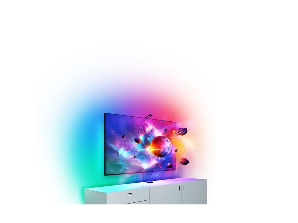 - Experimentați un efect „4D” ultra-imersiv, deoarece iluminarea de fundal vibrantă vă luminează spațiul cu culori din emisiunile, filmele și jocurile video preferate. Activați Sync+ pentru a extinde efectele de iluminare la peste 50 de dispozitive Nanoleaf RGB.