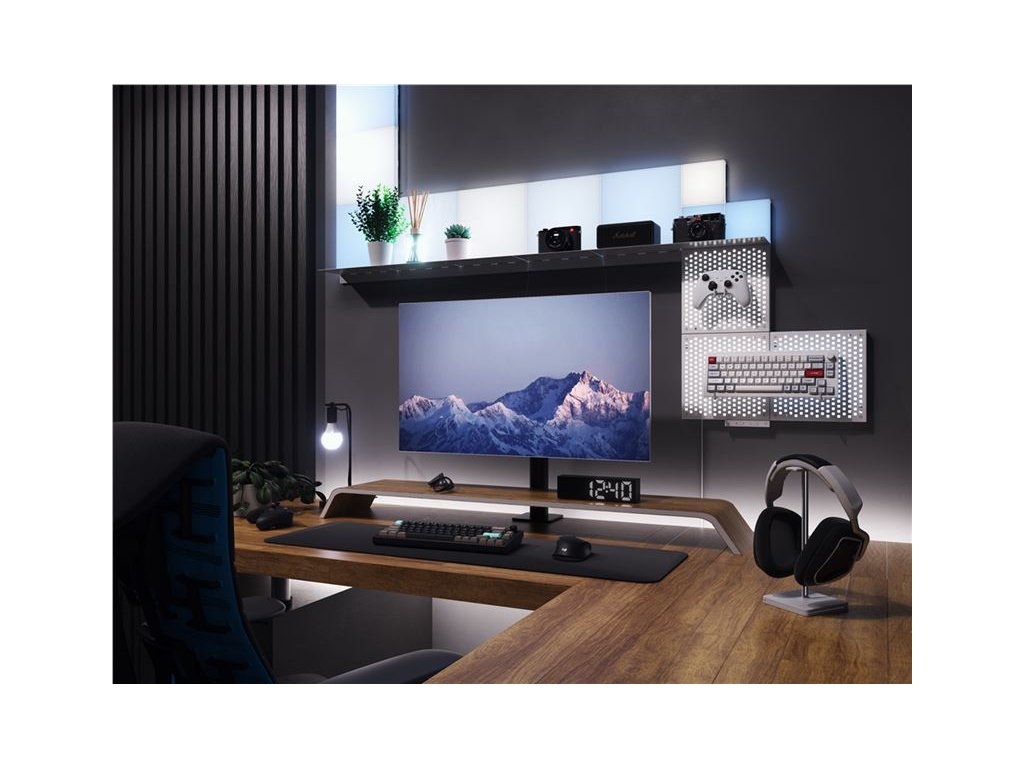 - Funcționalitate de afișare și depozitare Maximizați spațiul de pe birou și eliminați dezordinea cu rafturi care economisesc spațiu și panouri de perete ușoare - totul păstrând în același timp strălucirea obiectelor! Organizați și expuneți gadgeturile, tastaturile, controlerele și multe altele preferate.