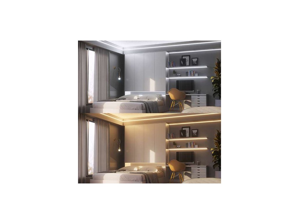 Cu banda LED, obțineți o luminozitate medie de 2.000 de lumeni și o luminozitate maximă de până la 2.400 de lumeni. Puteți regla temperatura culorii de la 2700 la 6500K și puteți utiliza canale de culoare RGBCCWW. Cu capacitatea de a afișa peste 16 milioane de culori și un indice de redare a culorilor de 85, veți avea întotdeauna o iluminare precisă și de înaltă calitate.