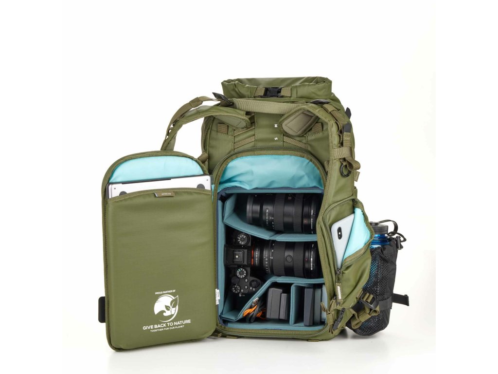 Prezentare generală Geanta foto Action X25 este concepută pentru fotografii care caută o geantă foto de aventură agilă, cu acces rapid și extra-compactă. Este o geantă foto eficientă pentru exterior, construită pentru acțiune în condiții meteorologice nefavorabile, în medii în continuă schimbare și pe teren dificil. Profilul redus al geantei X25 găzduiește confortabil majoritatea aparatelor foto DSLR mirrorless și gripless (cu o înălțime de aproximativ 13 cm) datorită unității de bază mirrorless mici incluse. Abordarea sa tip rulare permite utilizatorilor să mărească sau să micșoreze volumul în funcție de nevoile lor zilnice. Dispune de mai multe curele de atașare, inclusiv curele de compresie TPU pentru o durabilitate sporită la atașarea schiurilor, iar suportul detașabil pentru cască permite utilizatorilor să atașeze căști de bicicletă în exteriorul rucsacului. Curelele de umăr interschimbabile și reglabile ale geantei Action X sunt prevăzute cu două buzunare cu fermoar pentru a depozita cele mai recente telefoane de dimensiuni profesionale, o sticlă de apă sau accesorii personale. Geantele Action X25, X30, X40 și X50 dispun de acces lateral la cameră și două huse detașabile pentru trepied sau sticlă de apă, care pot fi prinse la curea pentru acces instantaneu la accesorii cheie, cum ar fi gustări și obiective, sau pot fi îndepărtate complet pentru a economisi greutate. Două huse căptușite protejează laptopurile și tabletele de până la 14 inci. O buclă detașabilă pentru curea, un mâner pentru bagaje și o husă AirTag ascunsă fac din Action X25 un companion discret și elegant în mediile urbane și în deplasare. Dacă sunteți în căutarea unei genți foto mici și subțiri, care să poată face față acțiunii, aventurii și cafenelelor, X25 este cea potrivită pentru dvs. *Acest kit de început include rucsacul Action X25, o unitate de bază mirrorless mică, un suport pentru cască și o husă de ploaie. Specificații Garanție: 5 ani Greutate: 2,25 kg Dimensiuni exterioare (în inci): 10,6 lățime x 18,9 înălțime x 6,7 adâncime în inci Dimensiuni exterioare (cm): 27 lățime x 48 înălțime x 17 adâncime în cm Dimensiuni interioare (în inci): 10,4 lățime x 18,7 înălțime x 6,3 adâncime în inci Dimensiuni interioare (cm): 26,5 lățime x 47,5 înălțime x 16 adâncime în cm Dimensiuni compartiment laptop - combinate (în inci): 9,4 lățime x 13 înălțime x 0,6 adâncime în inci Dimensiuni compartiment laptop - combinate (cm): 24 lățime x 33 înălțime x 1,5 adâncime în cmParametri suplimentari