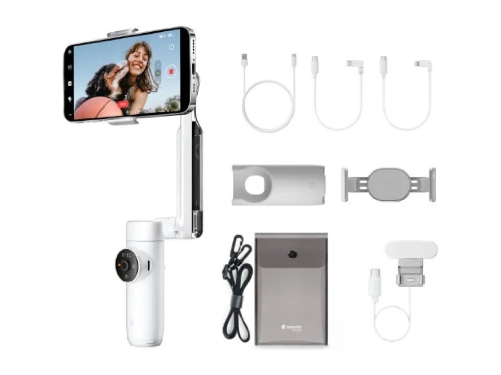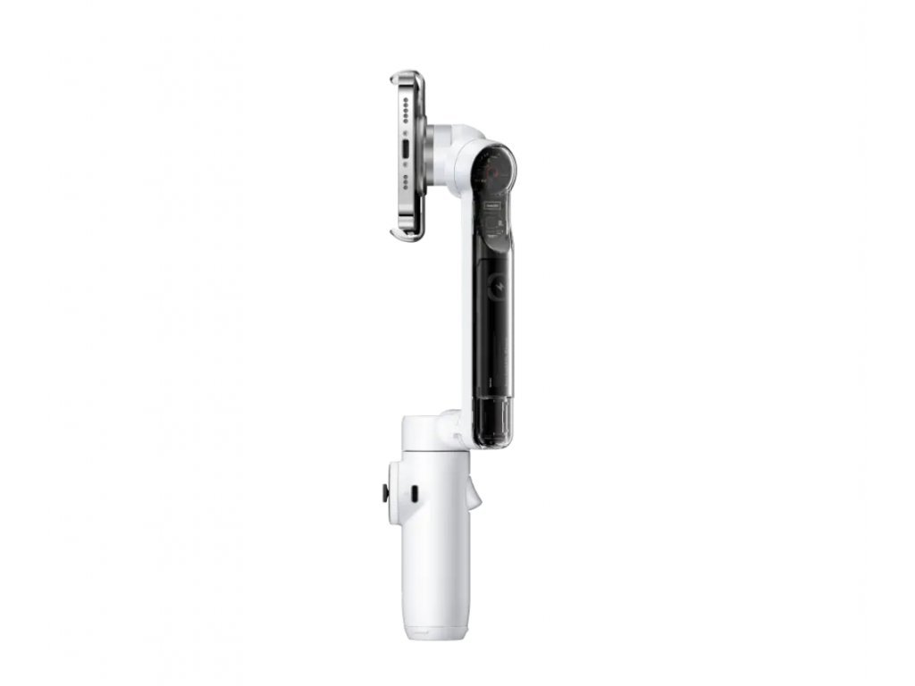 Insta360 Flow este un stabilizator de smartphone cu inteligență artificială pentru urmărire. Transformă-ți smartphone-ul într-un instrument de creare de conținut. Doar desfaceți-l o dată și plecați - nu este nevoie să îl răsuciți sau să apăsați butonul de pornire. Nu este necesar niciun echipament suplimentar. Flow se pliază compact pentru a încăpea cu ușurință în geantă, astfel încât să puteți surprinde cele mai bune momente ale vieții din mers. Compatibil cu telefoane cu grosimea de 6.9-10mm, latimea 64-84mm si cantarind pana la 300g. Lungimea tijei telescopice este de 215 mm. Suportul telefonului este magnetic. Adaptor pentru pantofi rece încorporat pentru accesorii. Timp maxim de funcționare 12 ore.