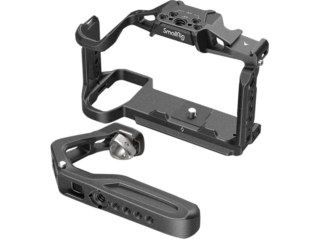 Mânerul superior proiectat ergonomic este confortabil și facilitează fotografierea din unghiuri joase și deplasarea camerei.Cușca are un stil raționalizat și inteligent care permite accesul complet la butoane.