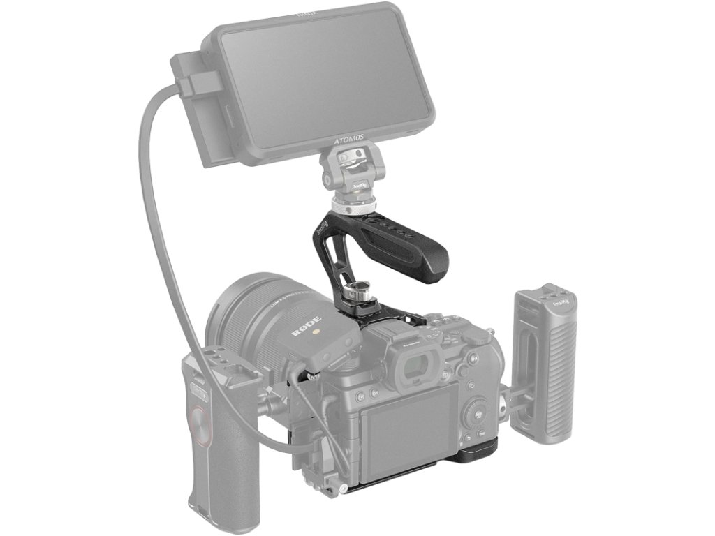 Orificiile de montare ARRI 3/8"-16 sunt potrivite pentru suportul pentru monitor SmallRig 2903 iar șina NATO din partea stângă a cuștii este potrivită pentru mânerul pivotant SmallRig NATO 3260.