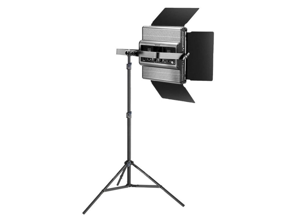 Carcasa este realizată din aluminiu de calitate aeronautică și este robustă și oferă o disipare excelentă a căldurii. Utilizați suportul în formă de U pentru a regla unghiul luminii cu 360°. Porțile pot extinde sau îngusta sursa de lumină cu 4 clapete, iar un difuzor mat ajută la reducerea strălucirii. Suporturile de lumină sunt robuste și oferă o gamă de înălțimi de la 2,85’-6,6’/87-200 cm și includ o geantă mare de transport.