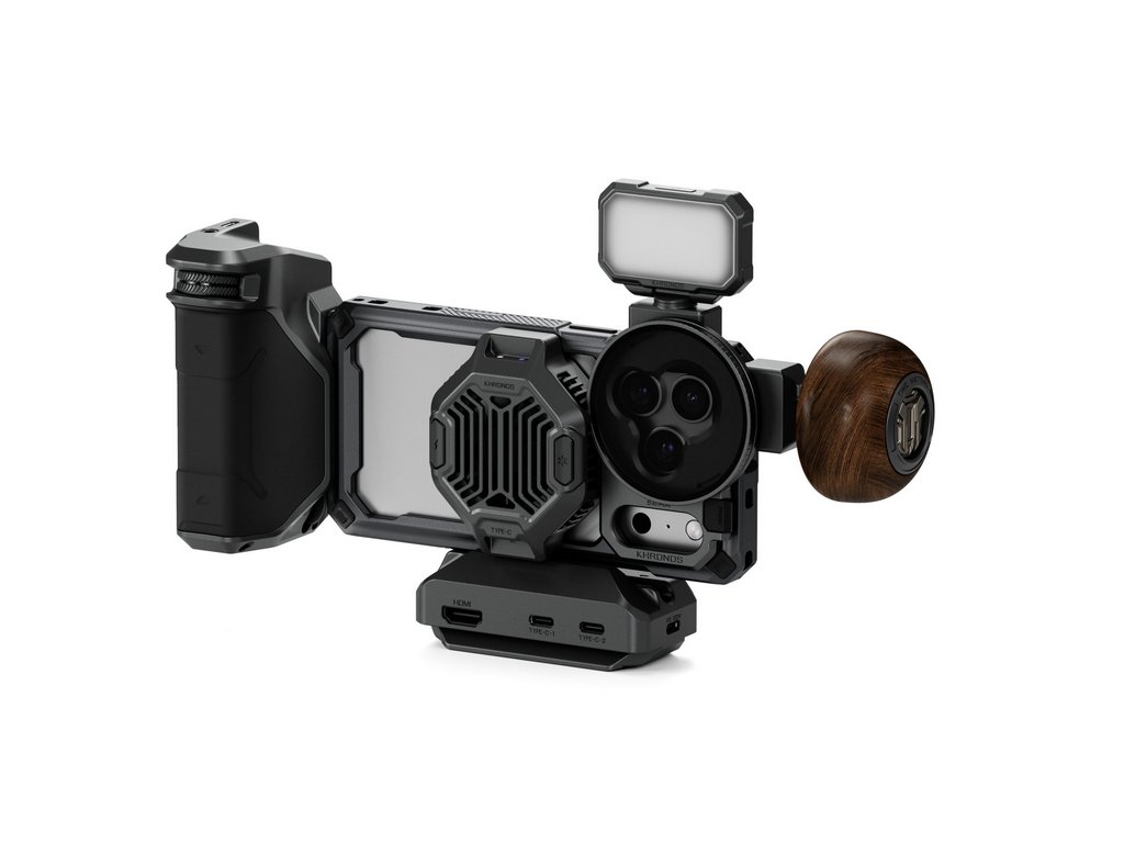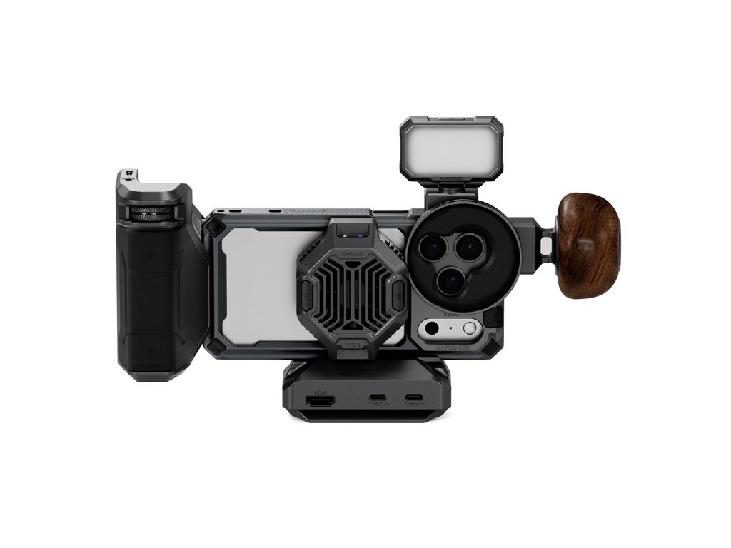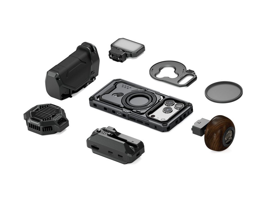 Kit Tilta Khronos Ultimate pentru iPhone 17 Pro în...Gri spațialeste un kit de filmare mobil profesional care include dulapul de bază Khronos,Mânerul Focus PD(cu alimentare/control), 22WSistem de răcire V2șiHub USB-C cu HDMI/ARCAși șiFiltru ND variabil de 58 mmsistem.