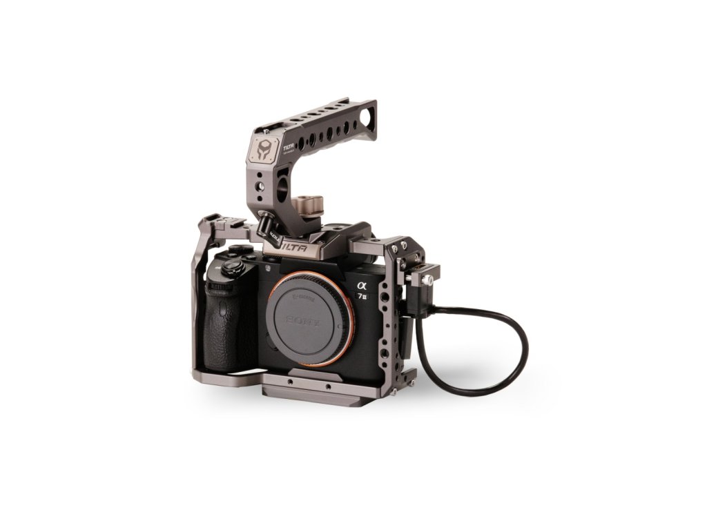 Această cușcă pentru cameră oferă armătură de protecție completă pentru camerele Sony a7, a7 II, a7 III, a7S, a7S II, a7R, a7R II, a7R III și a9.