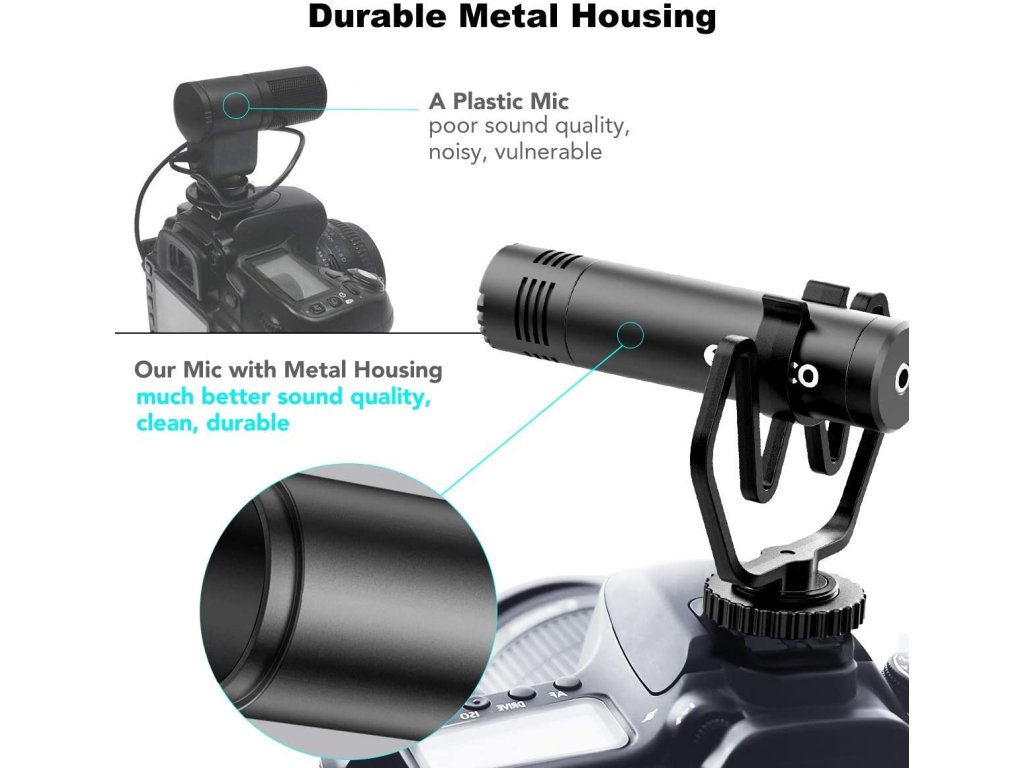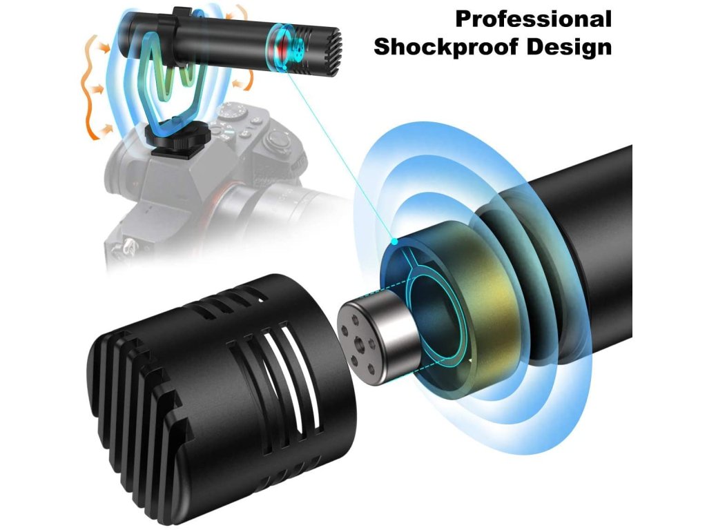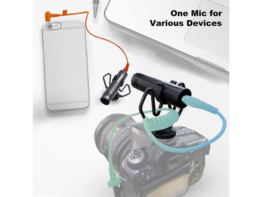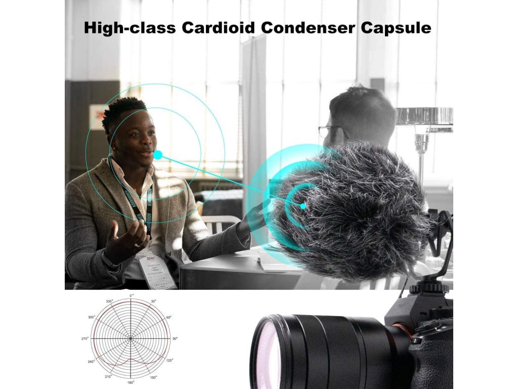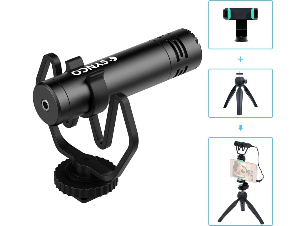 Microfon pe cameră: microfon miniatural, ușor, dar profesional, pe cameră, cu condensator electret cardioid și design de suspensie a microfonului, cu un efect mai bun de captare a sunetului. Capsulă de condensator cardioid premium - Microfonul SYNCO Mic-M1 folosește o capsulă de condensator cardioid de ?22, care atinge o sensibilitate mai mare și o calitate excelentă a sunetului. Este ideal pentru înregistrarea vocii umane, cum ar fi conversații, dialoguri, vlog cu zgomot de fundal minimizat și alte detalii audio. Setul Vlogger include un suport pentru smartphone, precum și un trepied portabil pentru desktop.
