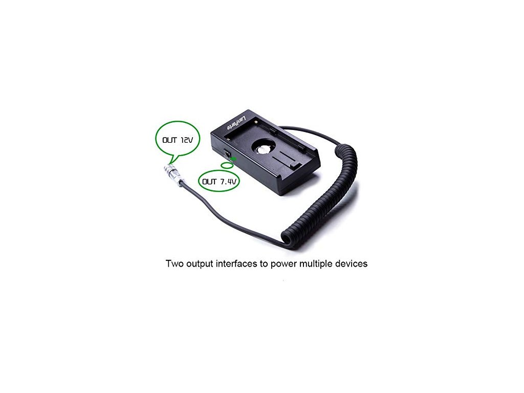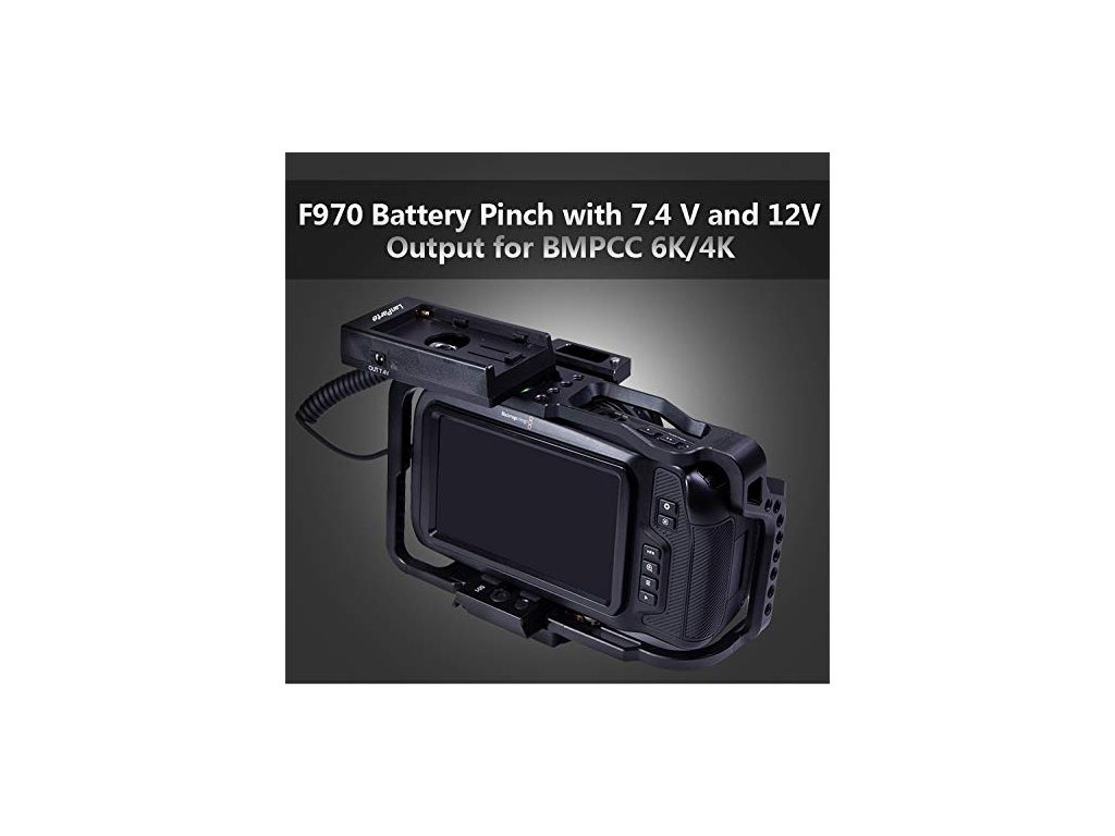 Placa bateriei F970 poate fi atașată la oricare dintre o varietate de găuri de montare de 1/4”-20 care sunt integrate în jumătatea și cușca completă a camerei, precum și pe placa superioară multifuncțională. Un cablu fals al bateriei poate fi apoi folosit pentru a alimenta camera cu durata de viață extinsă a bateriei oferită de bateria Sony F970.