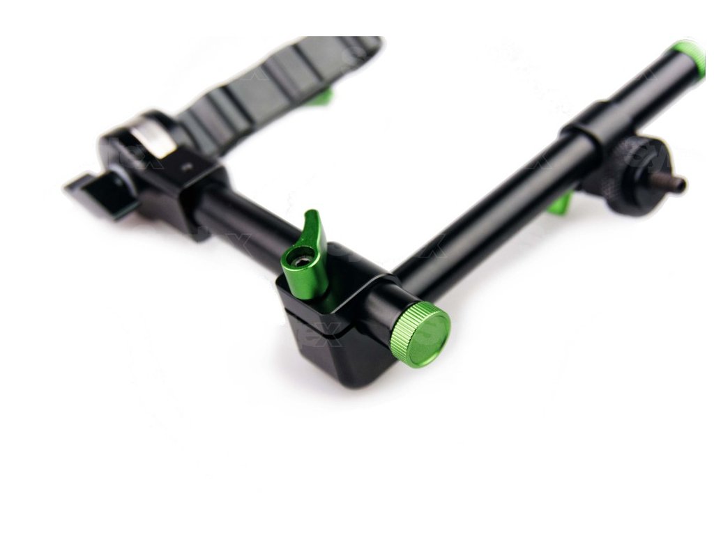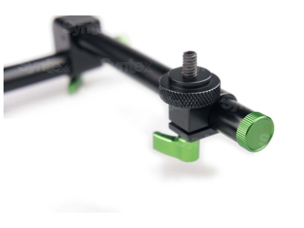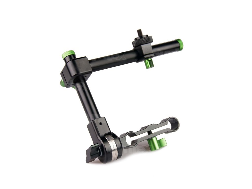 Lanparte Magic-Arm V2 este proiectat pentru a susține un monitor de câmp sau orice alt accesoriu cu filet de 1/4”-20. O clemă de stâlp de 15 mm este folosită pentru a se atașa la instalația dvs.; blocare pentru rozetă arri atașați clema tijei la brațul magic. Puteți regla unghiul brațului magic rotind încuietoarea rozetei; sau clemă de bară.