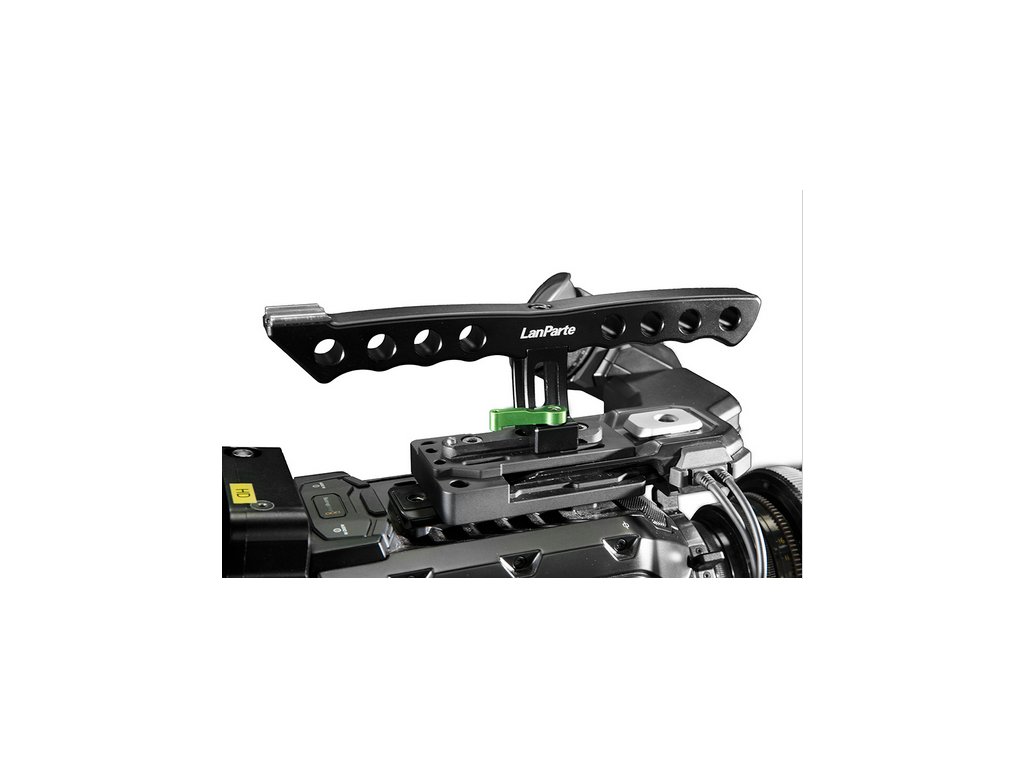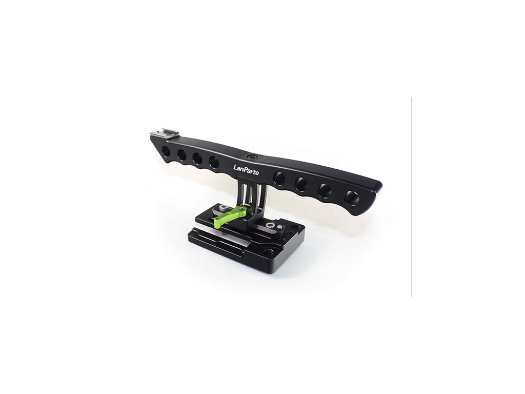 Folosiți această combinație de mâner superior/placă de brânză de la LanParte cu URSA Mini. Atât mânerul, cât și baza plăcii de brânză oferă mai multe găuri de 1/4"-20 și 3/8"-16, maximizând opțiunile de montare a accesoriilor. Placa de brânză se montează în partea de sus a camerei, iar mânerul superior se atașează la placa de brânză cu un conector de blocare a șinei NATO. Mânerul are formă de T și oferă un design de prindere mai sigur decât mânerul original URSA Mini. Alte caracteristici includ o construcție goală din aluminiu care minimizează greutatea și un suport frontal pentru pantofi rece.