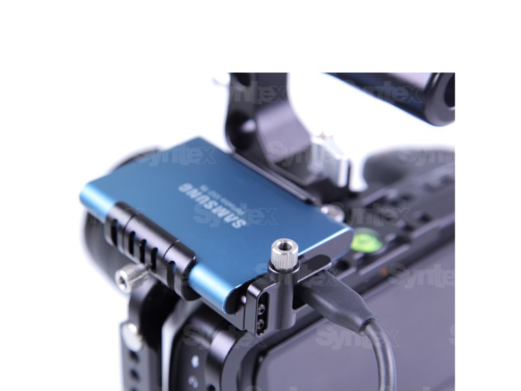 Clema SSD Lanparte pentru Samsung T5 este o soluție specializată de montare care funcționează cu Lanparte BMPCC4K-HC, BMPCC4K-C și alte cuști de pe piață. Designul său compact se potrivește perfect SSD-ului Samsung T5. Priza de pe partea de jos a pantofului oferă o funcție de eliberare rapidă pentru a monta cu ușurință clema pe cușcă. Clema este echipată cu o clemă mică pentru cablu USB-C pentru a preveni orice posibilitate de deconectare a transmisiei video în timpul filmării.