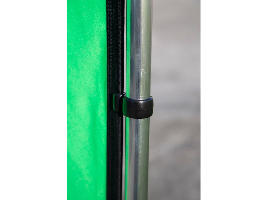 Fundalul panoramic este una dintre cele mai largi țesături neacoperite ale noastre. Dispune de un cadru din aluminiu cu trei laturi care creează o structură perimetrală utilă autoportabilă. Țesătura acoperă clemele de pe cadru și este disponibilă în trei culori -negru,verde Aalb