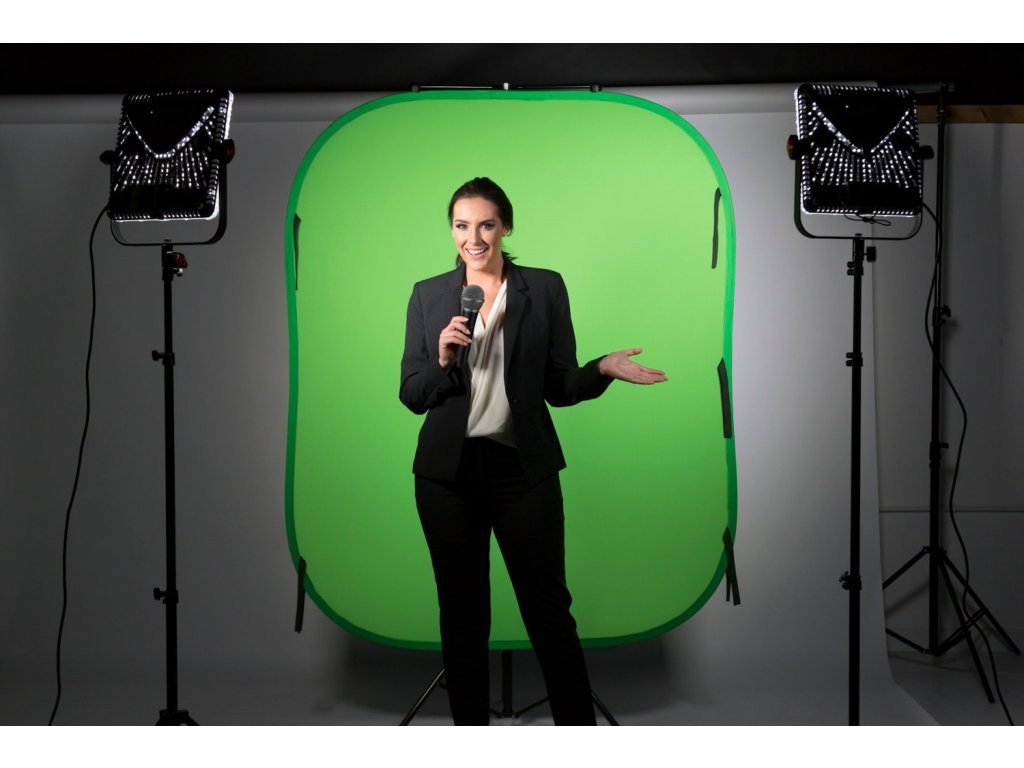 Fundal Chromakey 1,8m x 2,75m (6x9'). Excelent pentru plasare sau utilizare în studio. Chromakey este folosit în producția de filme și filme ca un instrument pentru a combina două sau mai multe imagini împreună în toate aspectele artei. În fotografia digitală, este din ce în ce mai folosit pentru a tăia și lipi un obiect pe un fundal.
