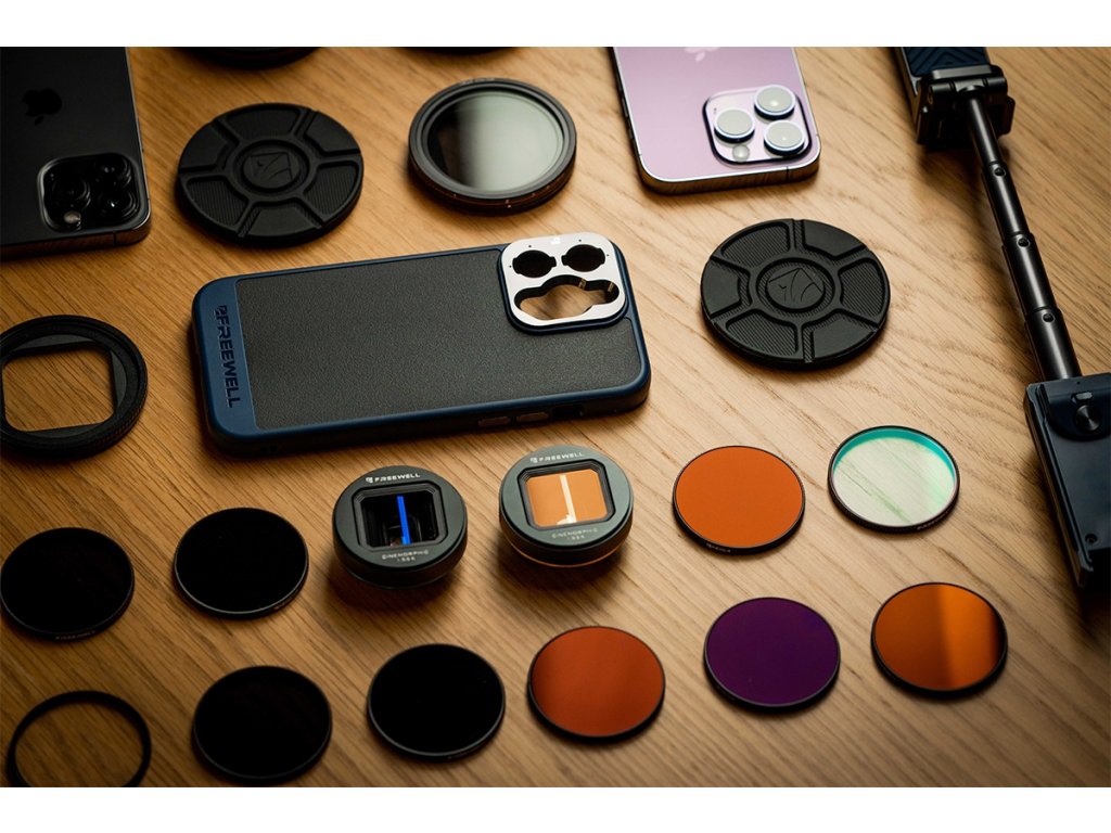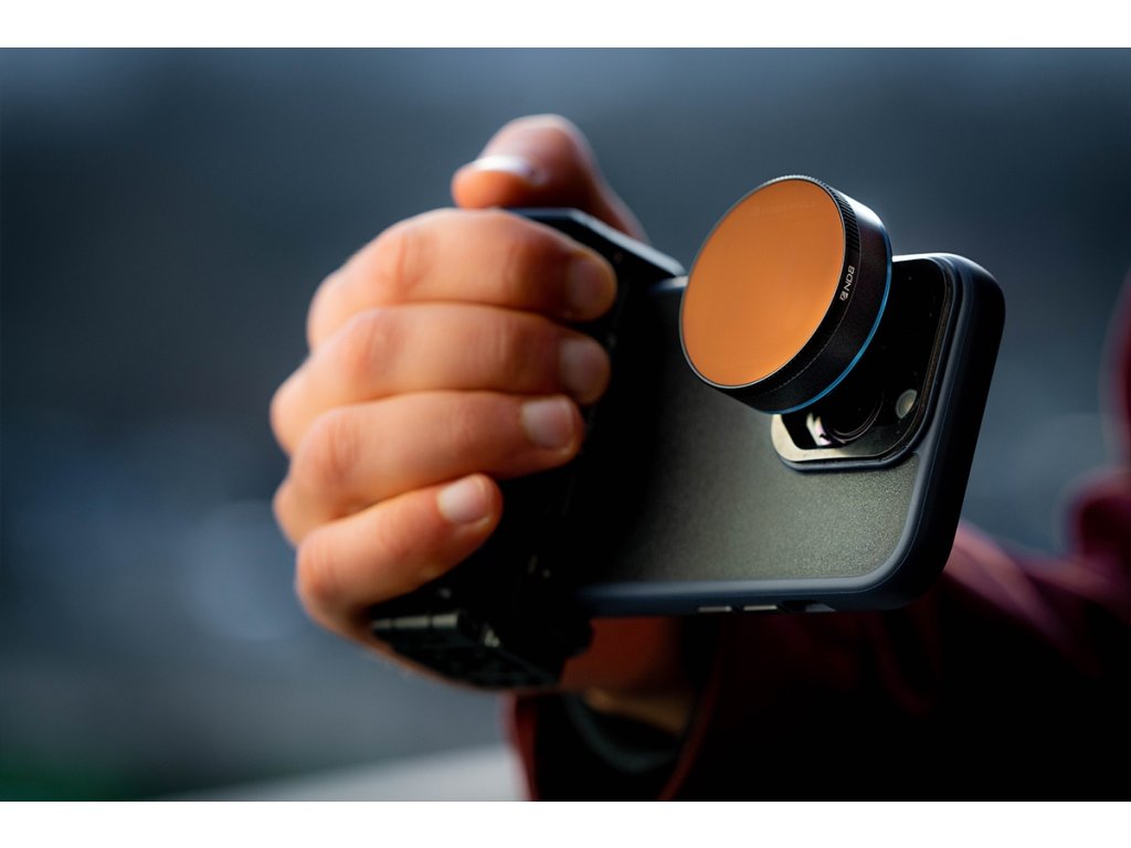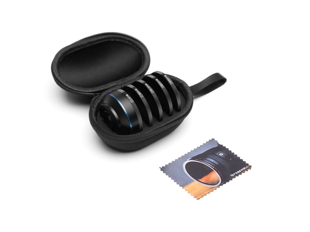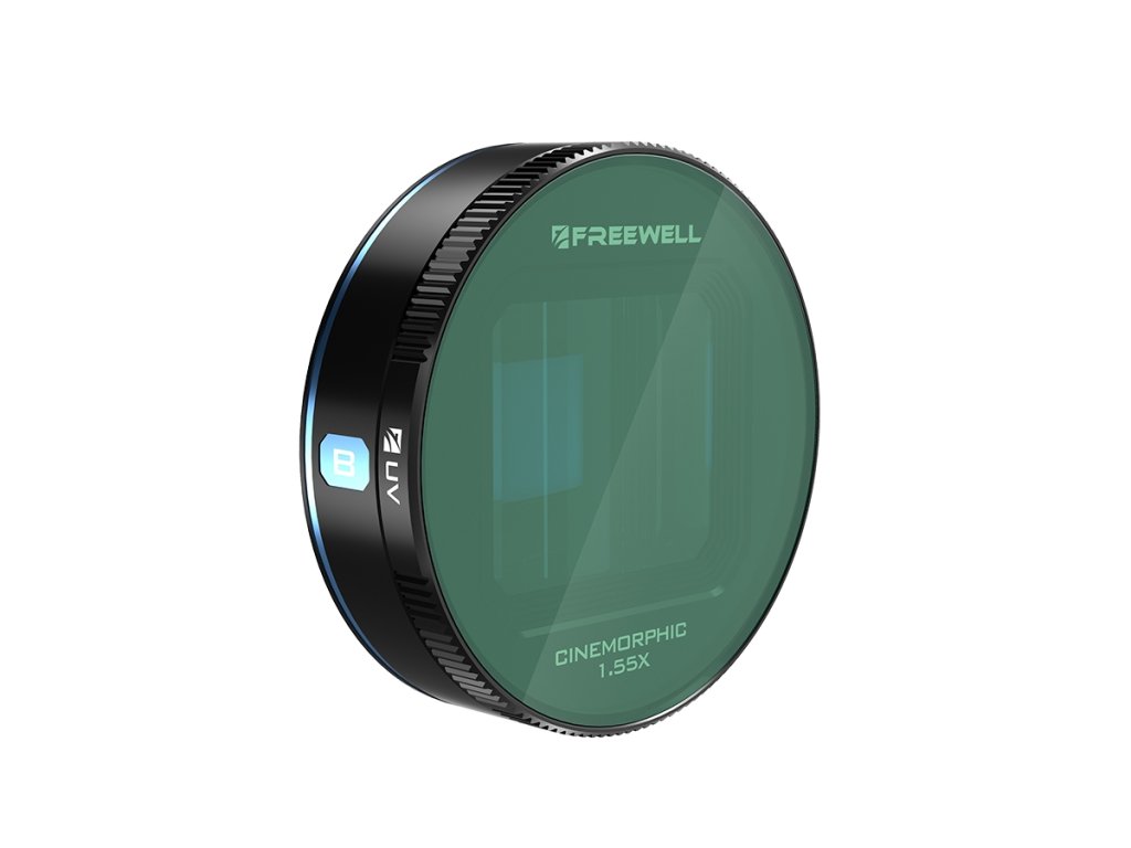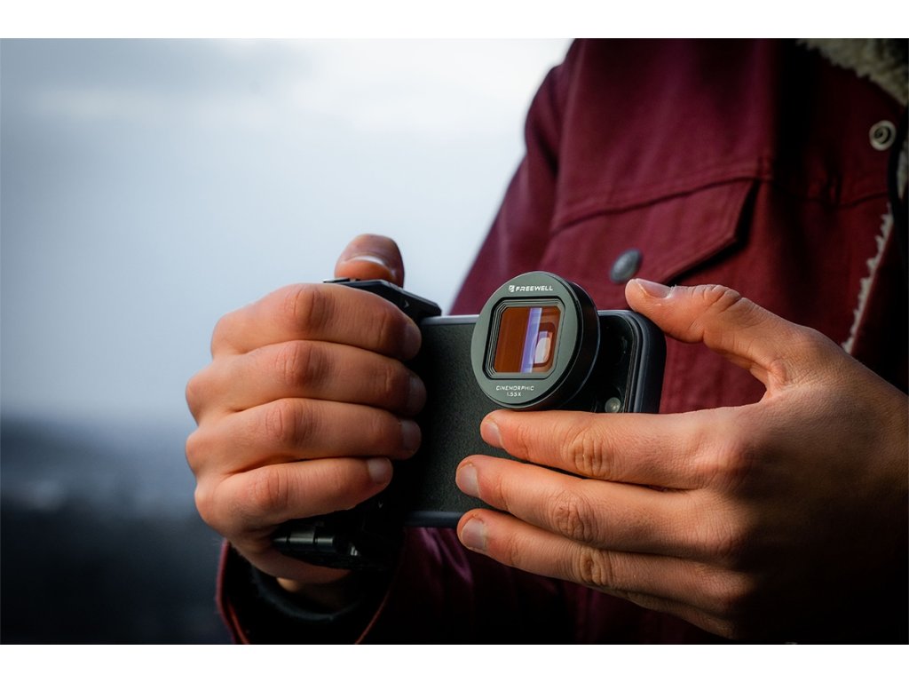 Obiectivul anamorfic Freewell Sherpa Blue Streak cu filtre pentru iPhone 13/14 Kitul include o lentilă anamorifică Blue Streak pentru a obține reflexii albastre cinematografice frumoase cu un raport de aspect de 2,76:1. Filtre cu filet: UV, ND8, ND16, ND32, ND64.