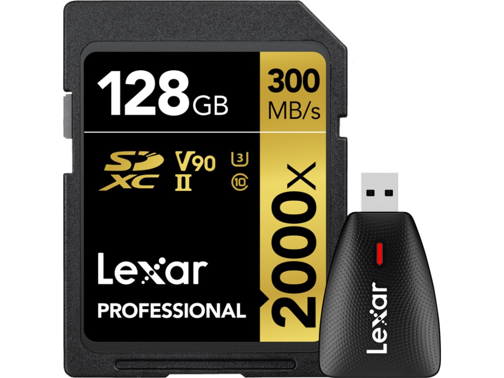 Lexar Pro 2000X SDHC/SDXC UHS-II U3(V90) R300/W260 128GB - inclusiv cititor de carduri...