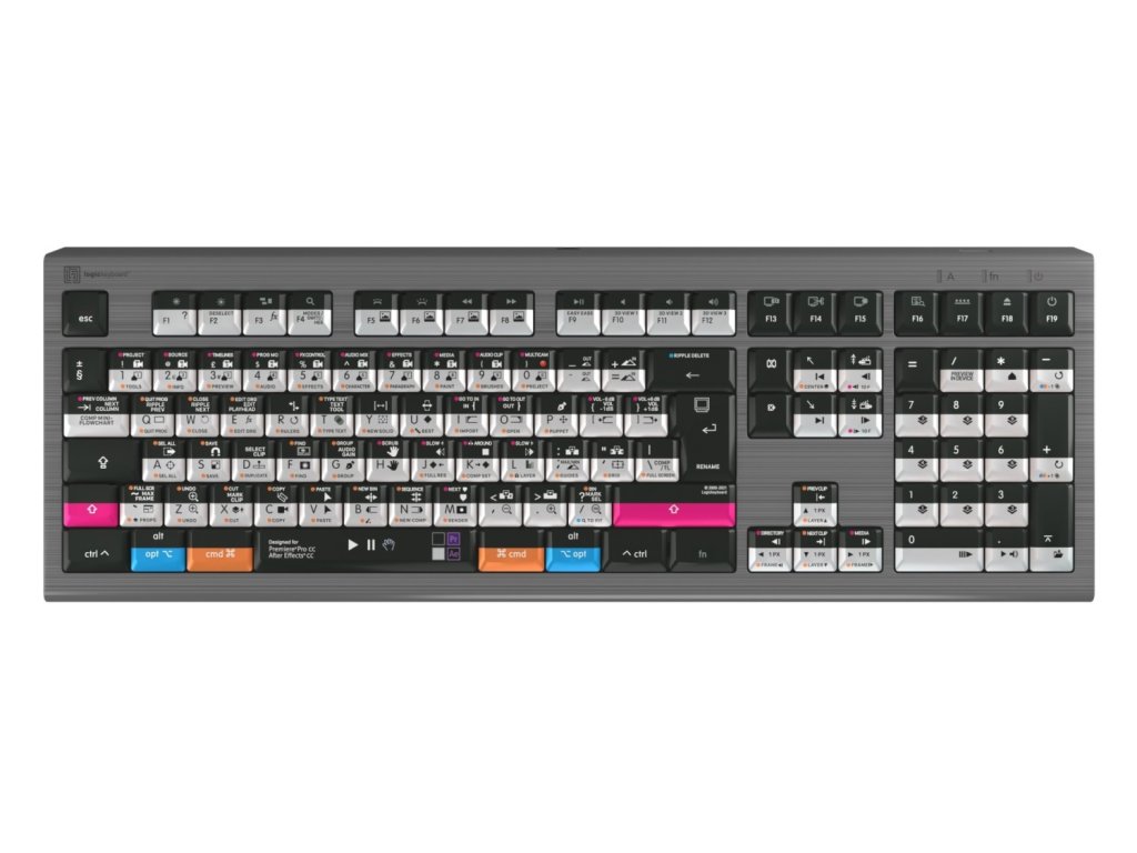 Tastatură logică iluminată din spate concepută pentru Premiere Pro și After Effects. Realizat pentru Mac. Această tastatură logică este concepută pentru editorii video și realizatorii de film care lucrează cu Adobe Premiere Pro și Adobe After Effects. Realizatorii de film pot comuta cu ușurință între aplicațiile de editare și au în continuare la îndemână toate comenzile rapide de care au nevoie.