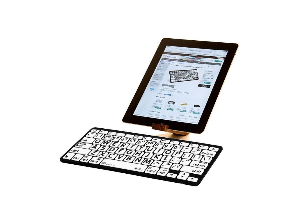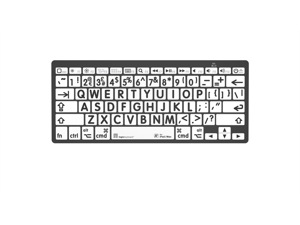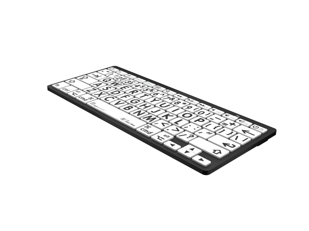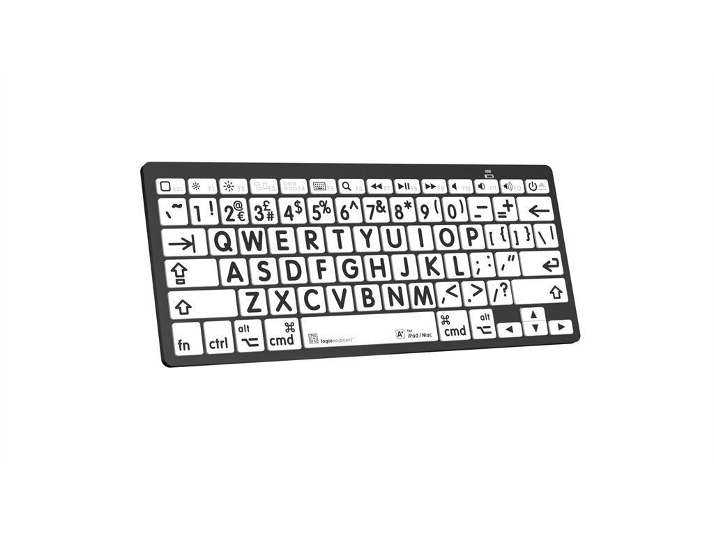 Tastatură Bluetooth cu imprimare mare - negru pe alb. Realizat pentru Mac. Navigarea pe computer nu a fost niciodată mai ușoară – tastatura cu imprimare mare Logickeyboard este concepută pentru a oferi un nivel mai ridicat de accesibilitate, făcând-o alegerea perfectă pentru persoanele cu deficiențe de vedere și vedere scăzută. Tastele mari și imprimate vizibil elimină problemele asociate cu tastaturile tradiționale, permițând o tastare mai confortabilă și mai eficientă.