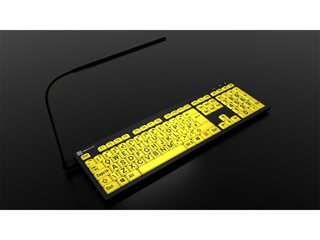 Proiectate pentru a se potrivi nevoilor individuale, tastaturile noastre cu imprimare mare sunt disponibile într-o varietate de combinații de culori, permițând utilizatorilor să aleagă o combinație de culori care rezonează cu preferințele lor. Această tastatură este Negru pe galben.