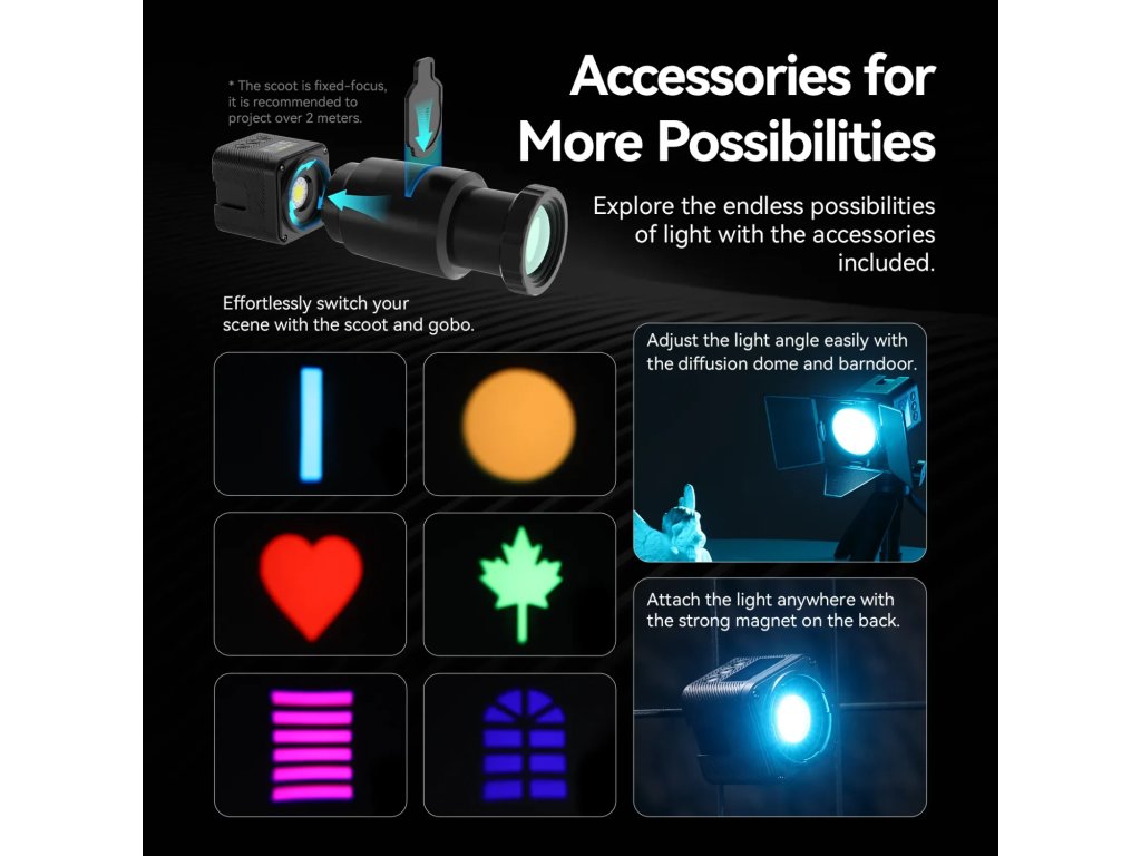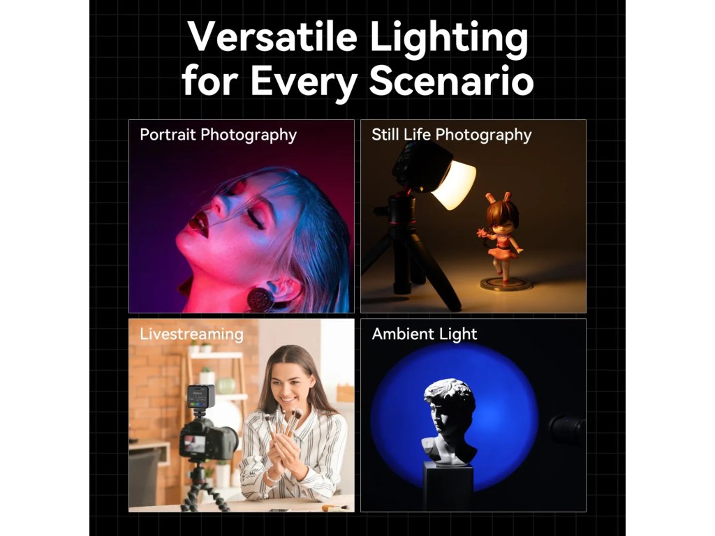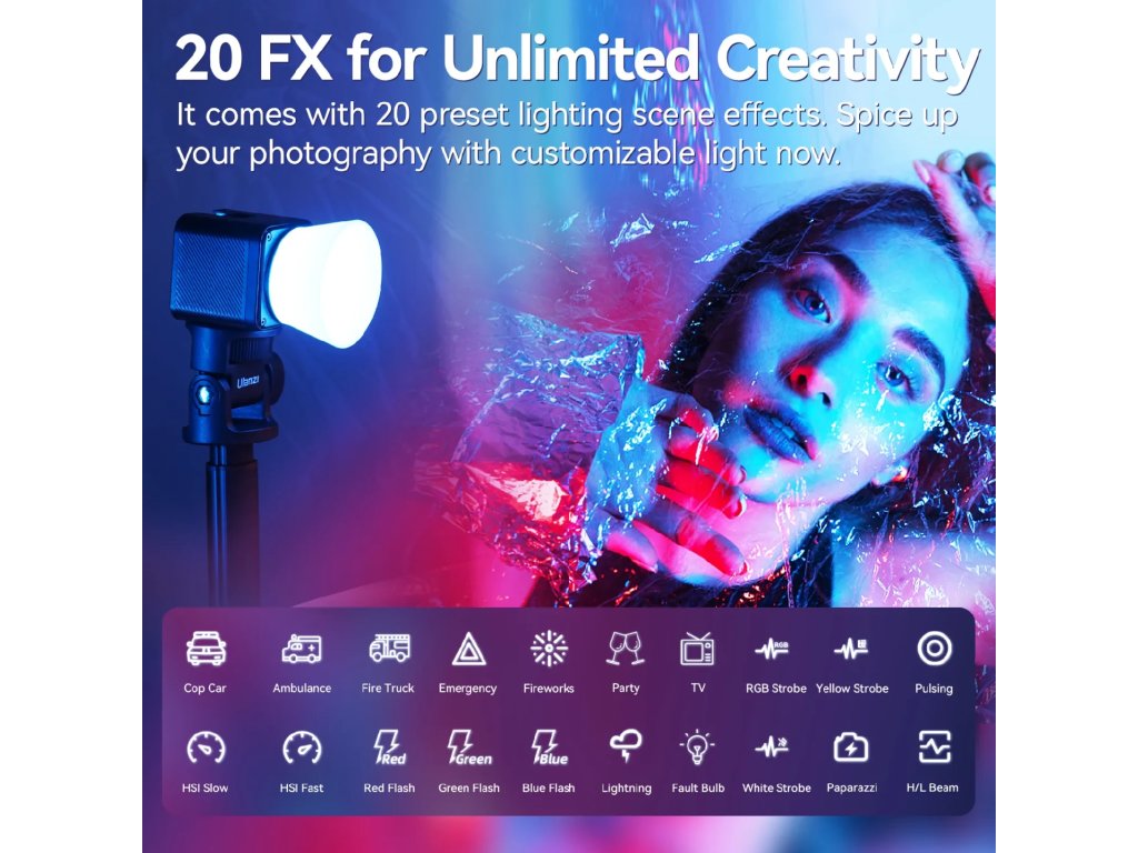Iluminare versatilă pentru orice scenariu. Lampa portabilă de dimensiunea palmei oferă performanțe puternice cu becuri COB de 5 W. 20FX pentru creativitate nelimitată.