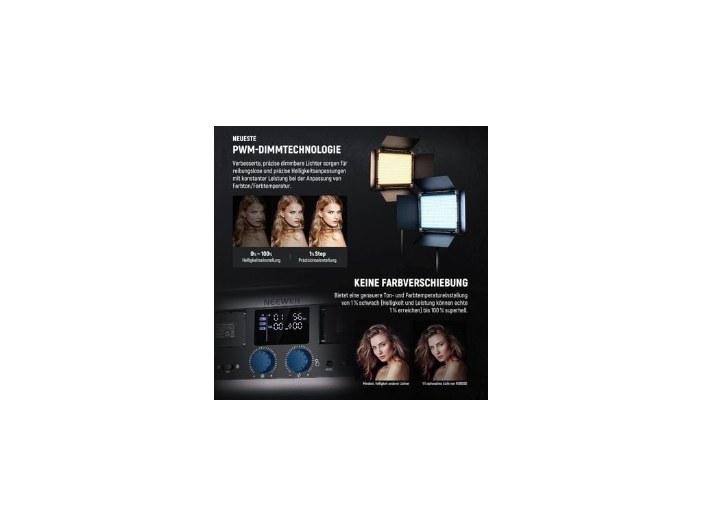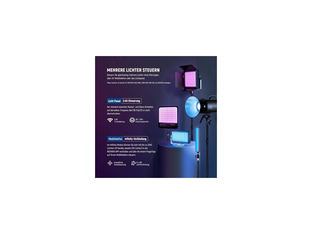 Lumină foto puternică în două culori și RGB, LED RGB 480x, 60W, 7300 Lux/1m de iluminare, temperatura luminii reglabilă de la 2500K la 8500K, reglare lină a luminozității în pași de 1%Parametri suplimentari