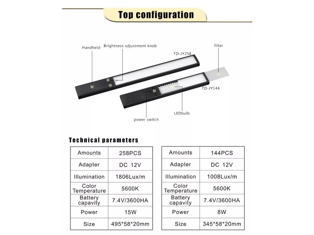 CRI: 90+, 1806 Lux/m, temperatura culorii 5600K, 9 niveluri de luminozitate reglabile, satisfacand diferite nevoi de fotografiere