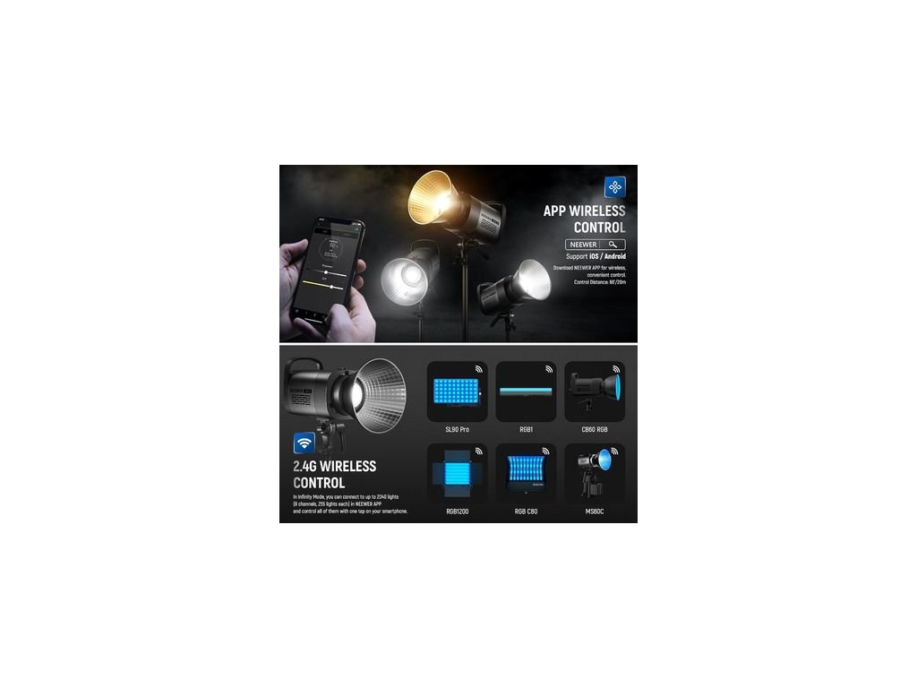 Lumină permanentă de studio Neewer CB60, Bowens, 34000Lux/1m, 2700-6500K, CRI97+, 70W, LED COB bicolor