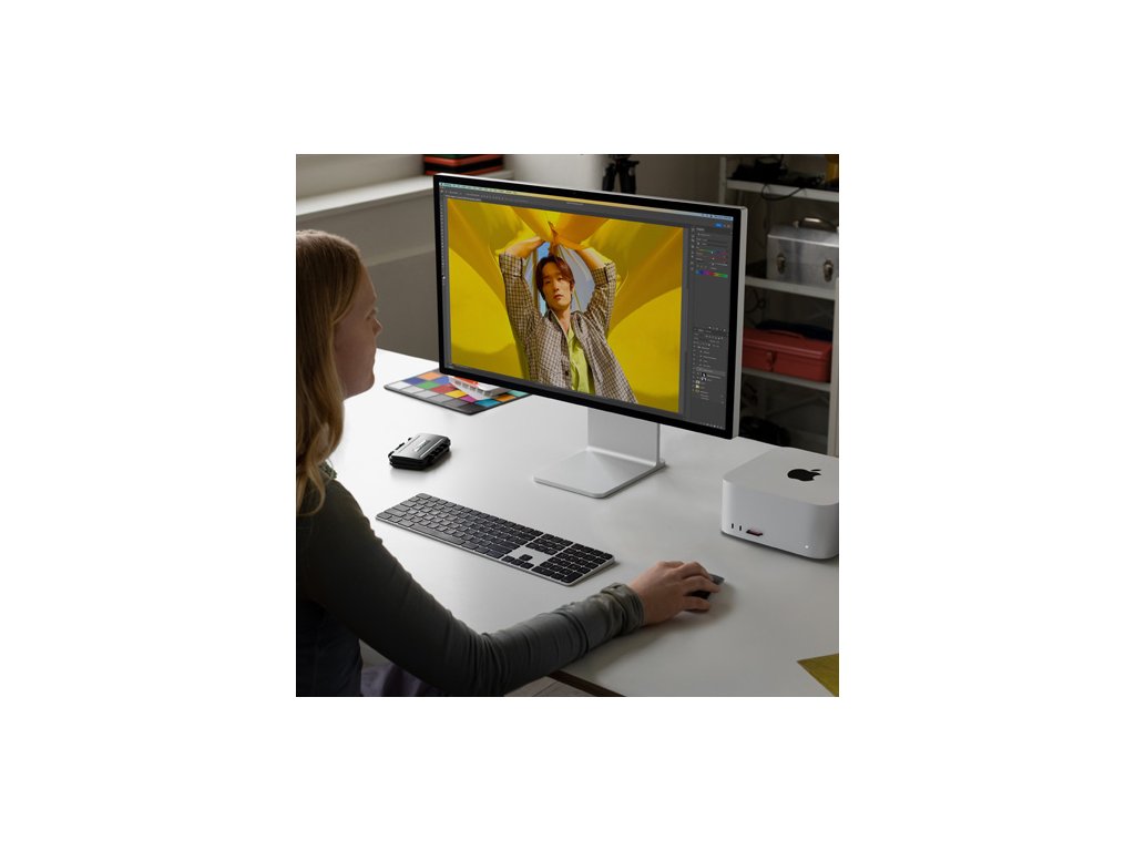 Cu Mac Studio, nu ai doar un instrument puternic, ci și un plus elegant pentru spațiul tău de lucru. Carcasa sa compactă, argintie, cu numeroase porturi și macOS Monterey cu funcții noi îți vor permite să fii productiv și creativ ca niciodată.