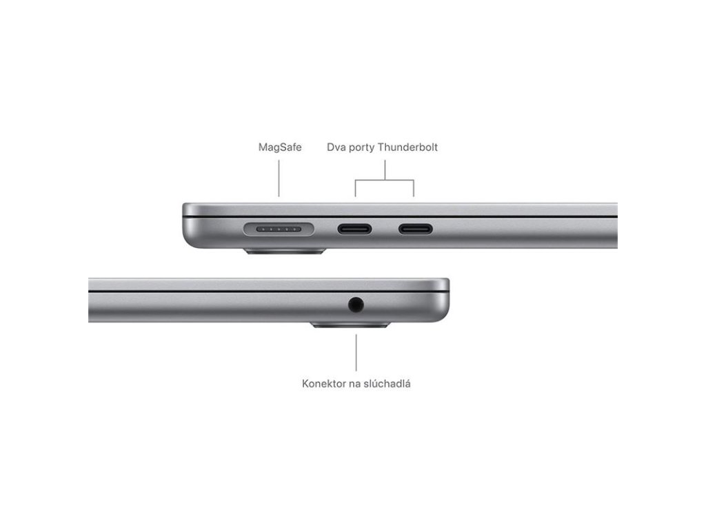 EL ARE CONEXIUNI – MacBook Air are două porturi Thunderbolt, o mufă pentru căști, Wi-Fi 6E, Bluetooth 5.3 și un port de încărcare MagSafe. Și cu capacul închis, puteți conecta până la două afișaje externe la acesta.