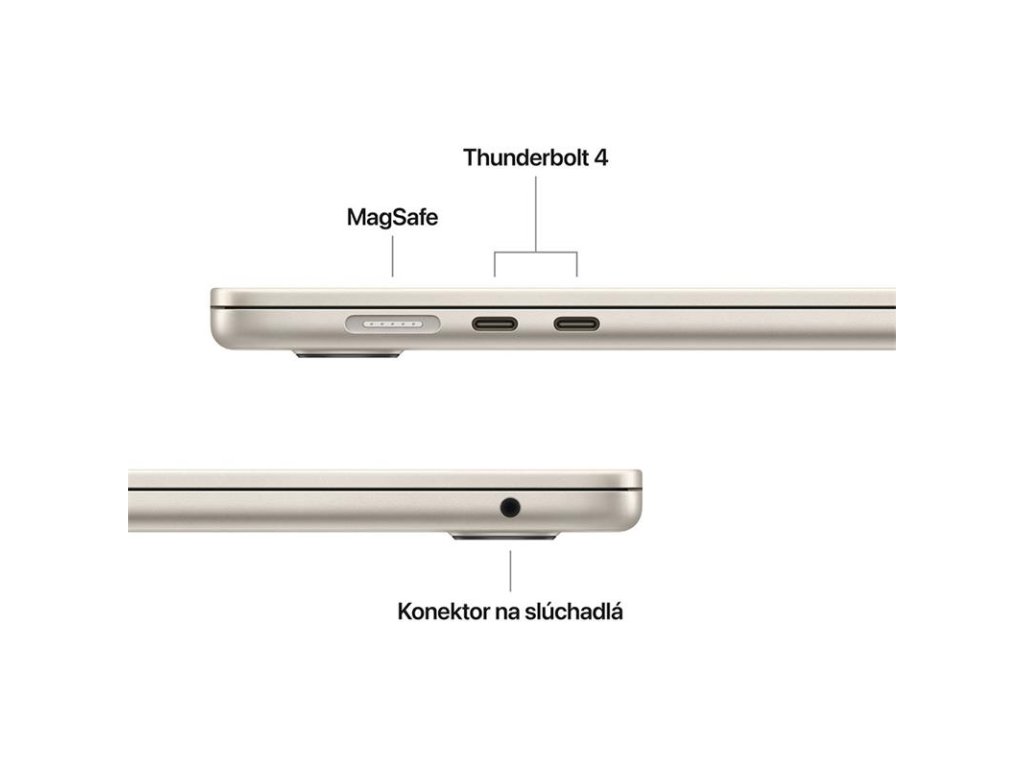 - Conectivitate și compatibilitate:Cu două porturi Thunderbolt 4, un port de încărcare MagSafe și compatibilitate cu mai multe monitoare externe, MacBook Air îți permite să te conectezi și să lucrezi eficient. Profită de aplicațiile macOS puternice și de integrarea ușoară cu dispozitivele Apple.