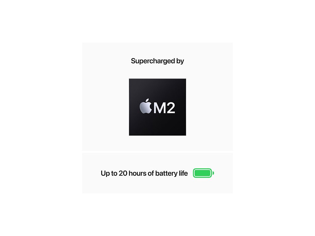 DURAȚA BATERIEI DE PÂNĂ 20 ORE – Datorită cipului Apple M2, care economisește energie, te va menține să lucrezi toată ziua și noaptea.