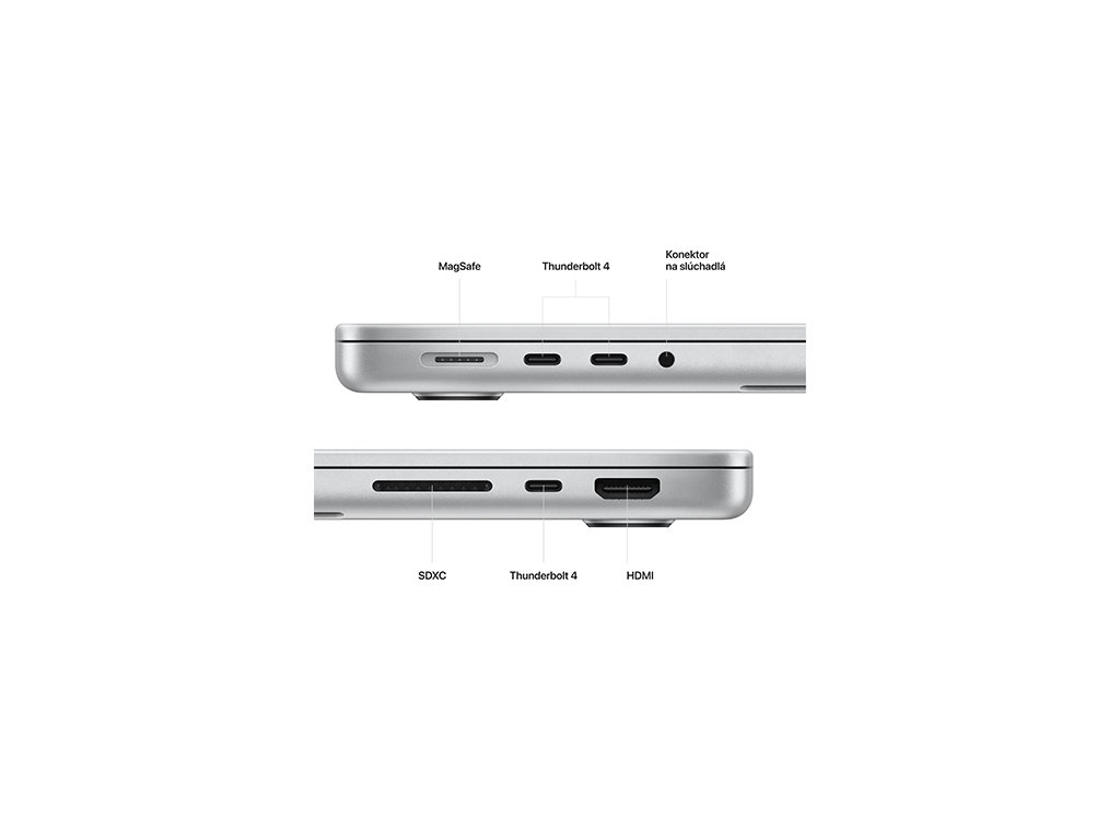 CONECTAȚI TOT CE îți trebuie – MacBook Pro are un port de încărcare MagSafe, trei porturi Thunderbolt 4, un slot pentru card SDXC, un port HDMI și o mufă pentru căști. Și datorită interfețelor Wi-Fi 6E și Bluetooth 5.3, vă puteți bucura de o conexiune fără fir lină pe acesta.