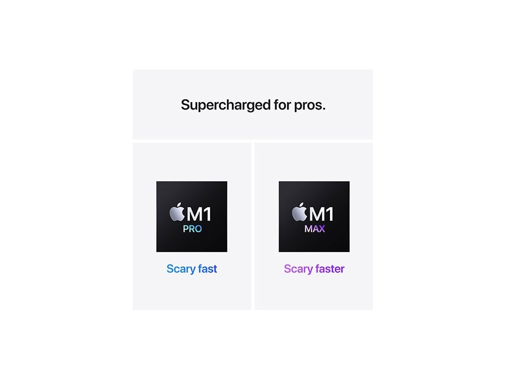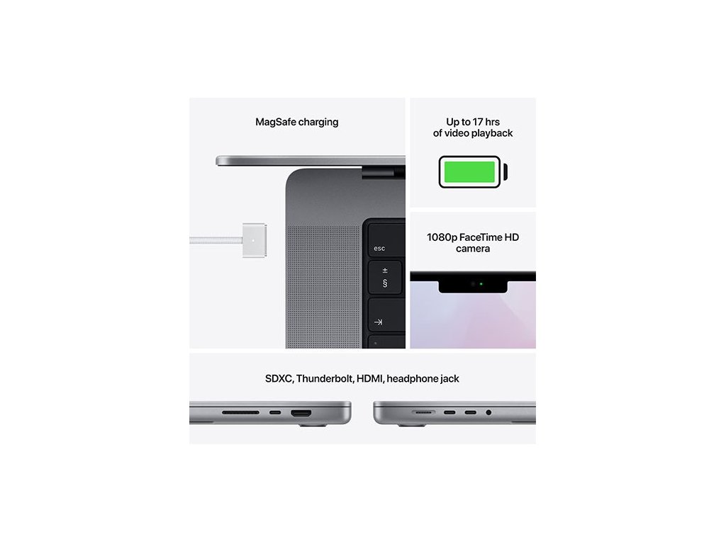 - Două afișaje externe cu o rezoluție de până la 6K la 60 Hz cu mai mult de un miliard de culori (M1 Pro)