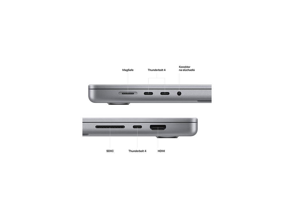 MacBook Pro are toate porturile de care aveți nevoie, cum ar fi un port de încărcare MagSafe, trei porturi Thunderbolt 4, un slot pentru card SDXC, un port HDMI și o mufă pentru căști. Datorită interfețelor Wi-Fi 6E și Bluetooth 5.3, vă puteți bucura de o conexiune fără fir lină. Și când folosiți dispozitive Apple împreună, puteți face lucruri uimitoare. Copiați și inserați între iPhone și MacBook Pro, primiți apeluri prin FaceTime și trimiteți mesaje prin aplicația Mesaje. Și acesta este doar începutul.