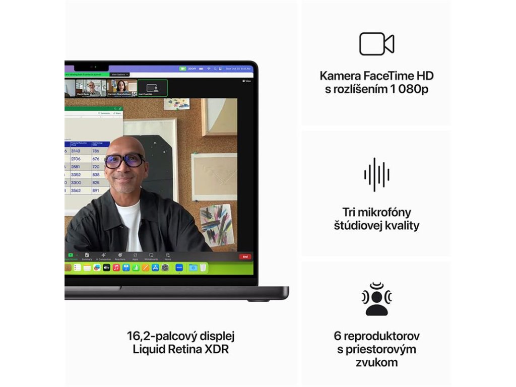 - Ecran Liquid Retina XDR de 16,2 inciCu imagistică HDR și moduri profesionale, oferă o gamă dinamică extremă și o luminozitate de până la 1000 de niți.
