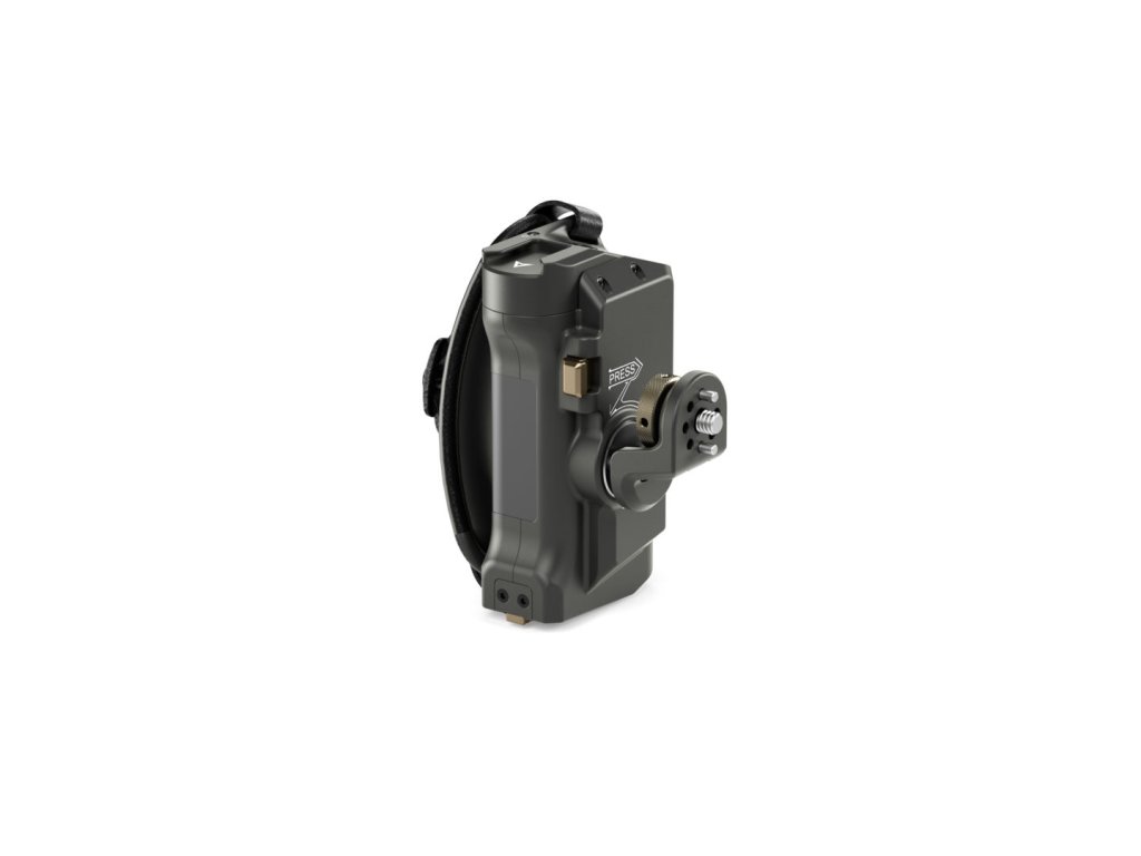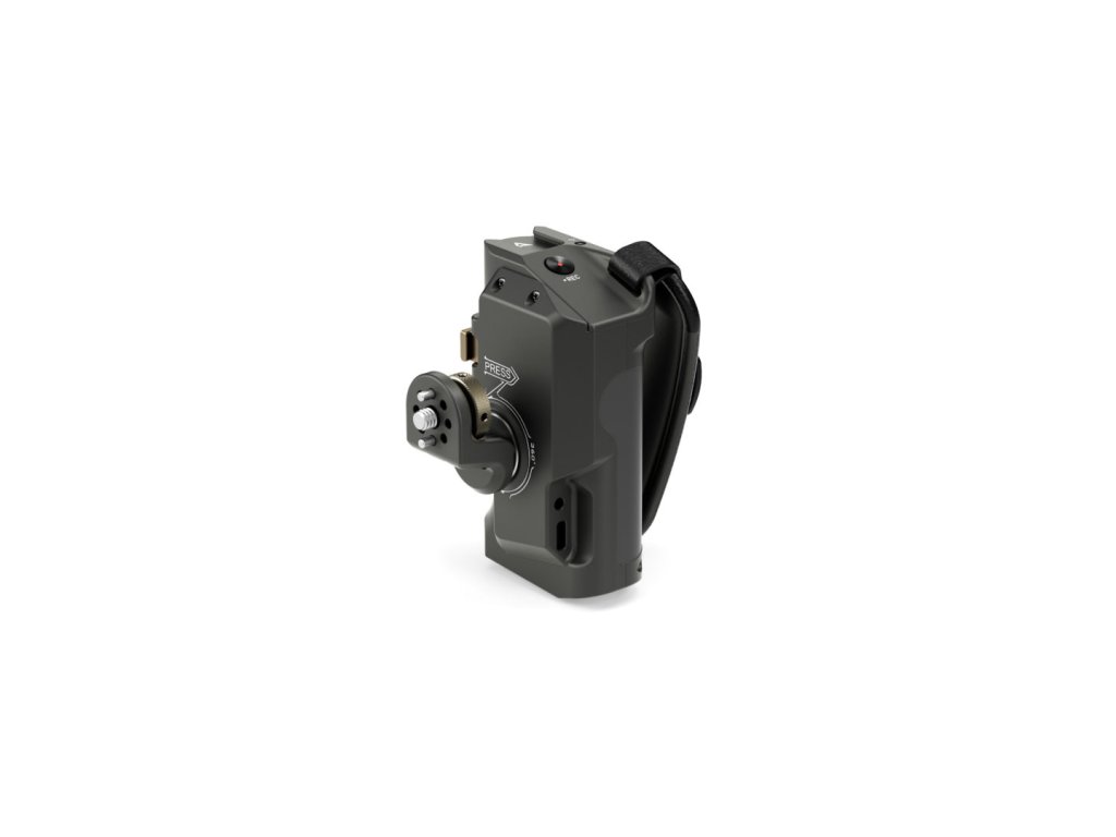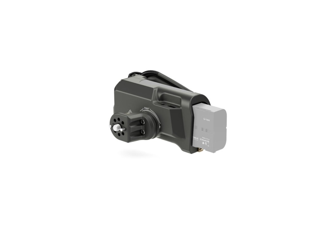 Acest mâner avansat se fixează pe partea dreaptă a cuștilor de înclinare a camerei. Portul pentru baterie din partea de jos a mânerului vă permite să utilizați bateria Sony F570 pentru a alimenta diverse accesorii prin intermediul ieșirilor de alimentare de 8V USB-C și 12V DC.