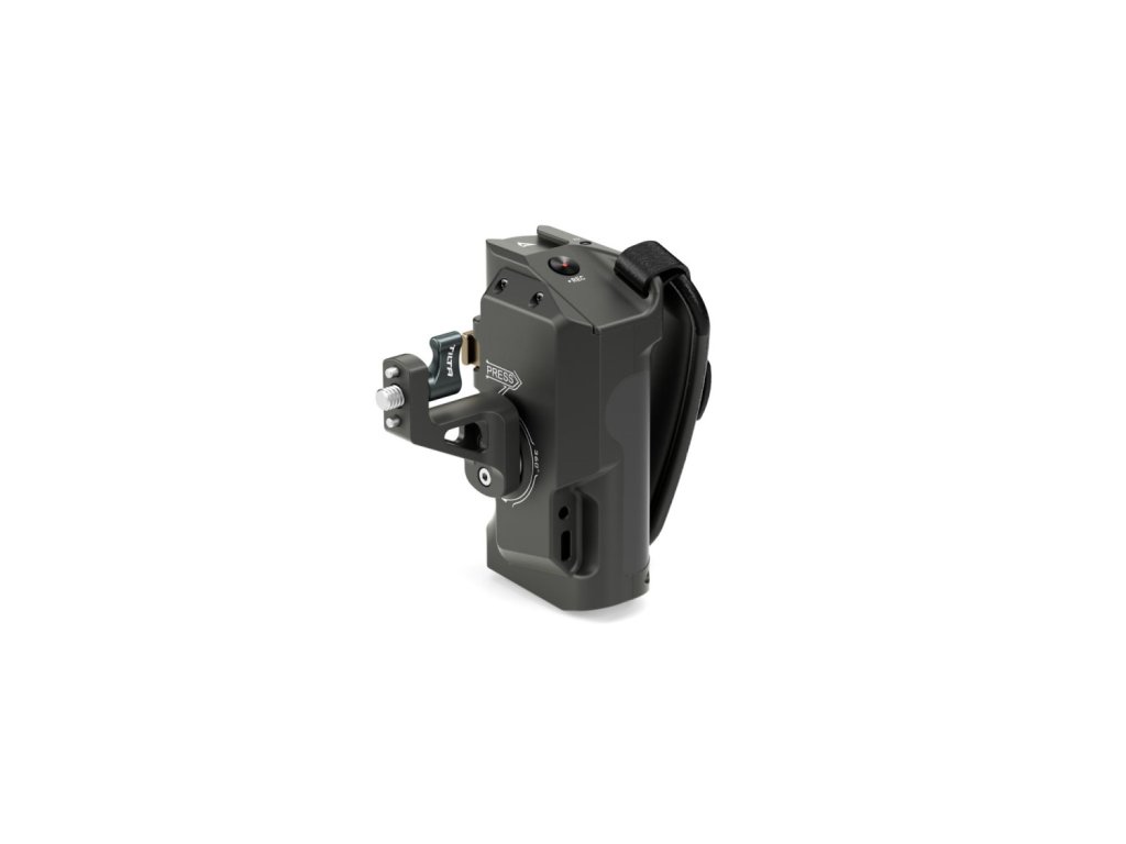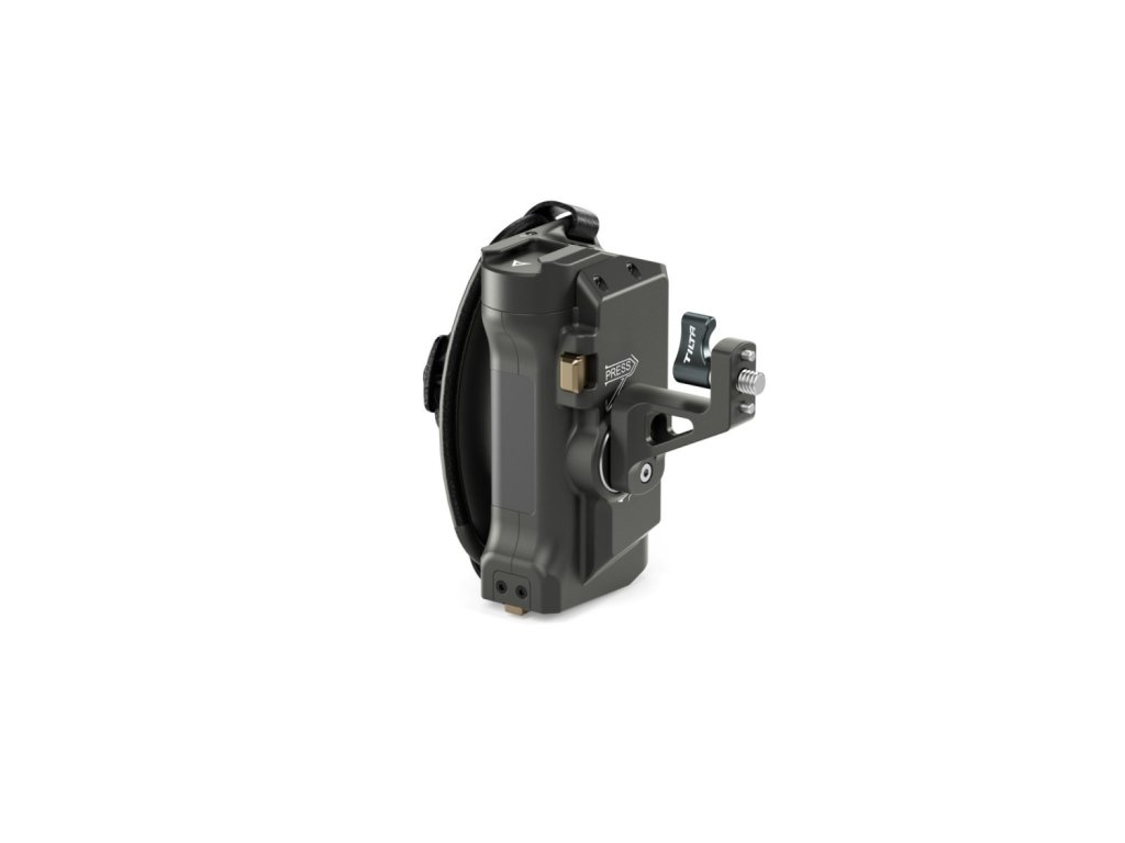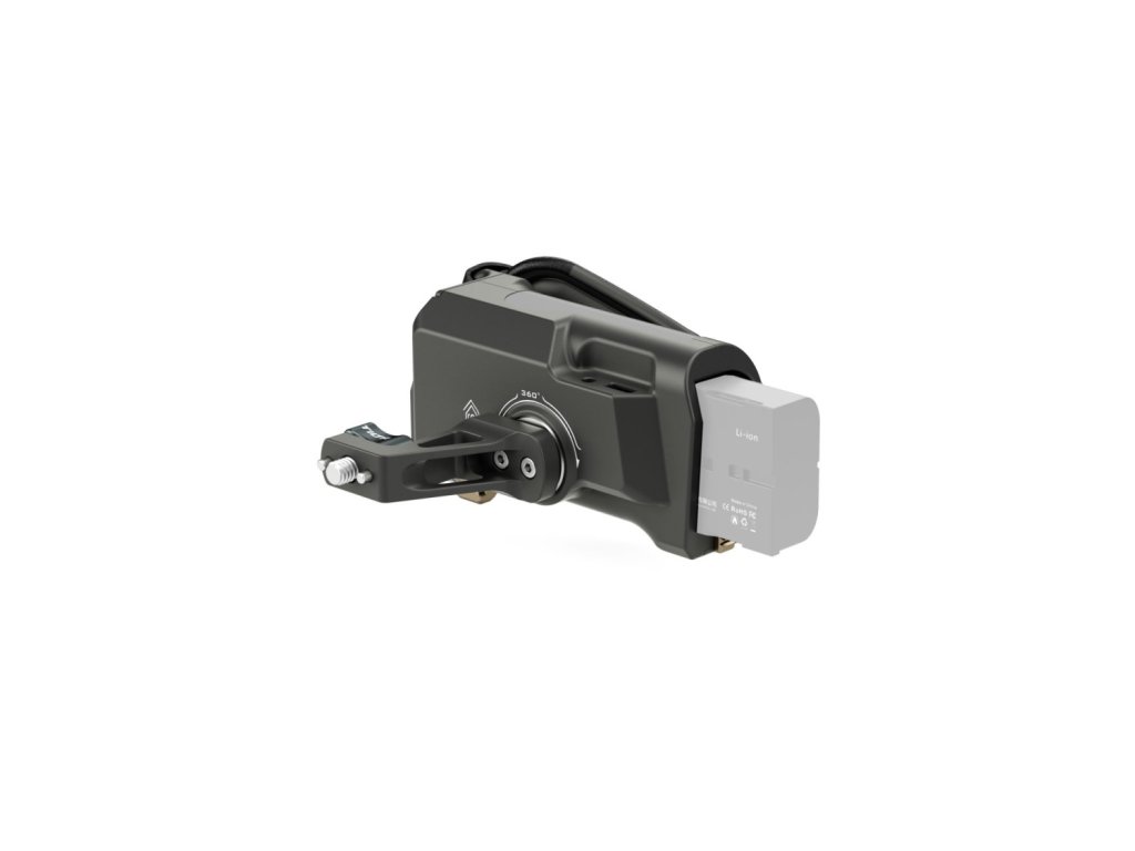 Acest mâner avansat se fixează pe partea dreaptă a cuștilor de înclinare a camerei. Portul pentru baterie din partea de jos a mânerului vă permite să utilizați bateria Sony F570 pentru a alimenta diverse accesorii prin intermediul ieșirilor de alimentare de 8V USB-C și 12V DC.