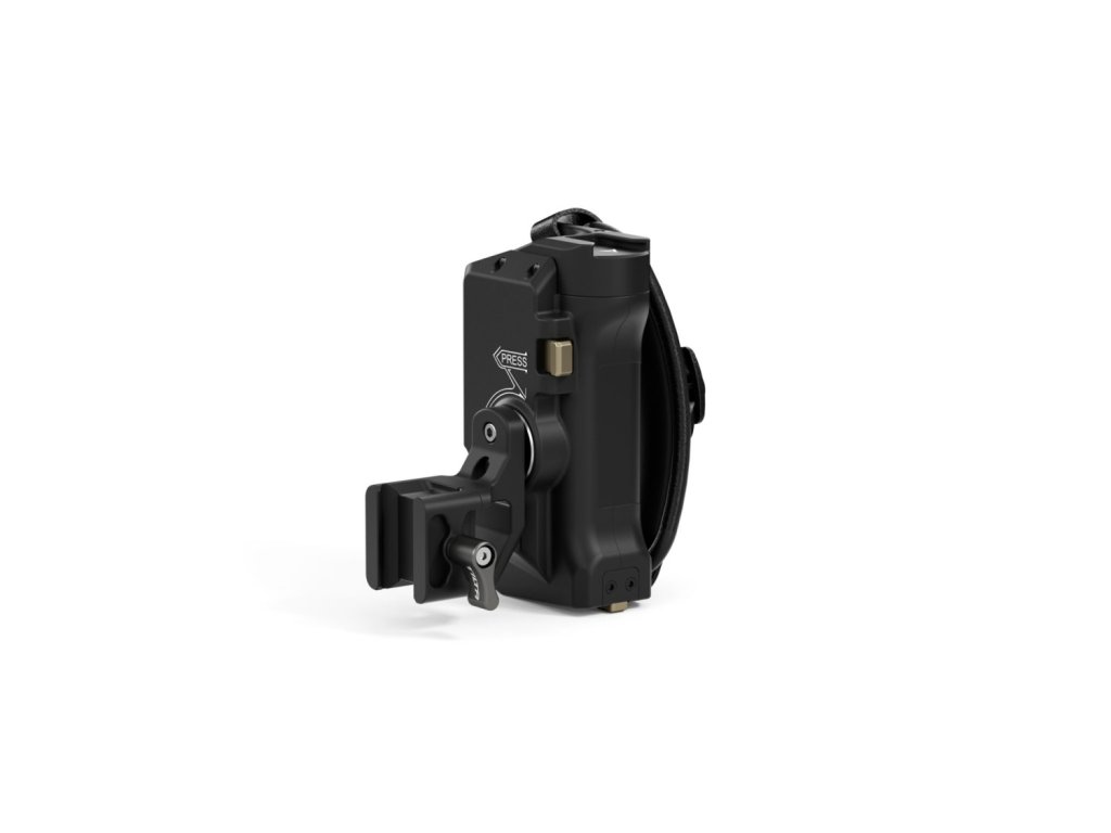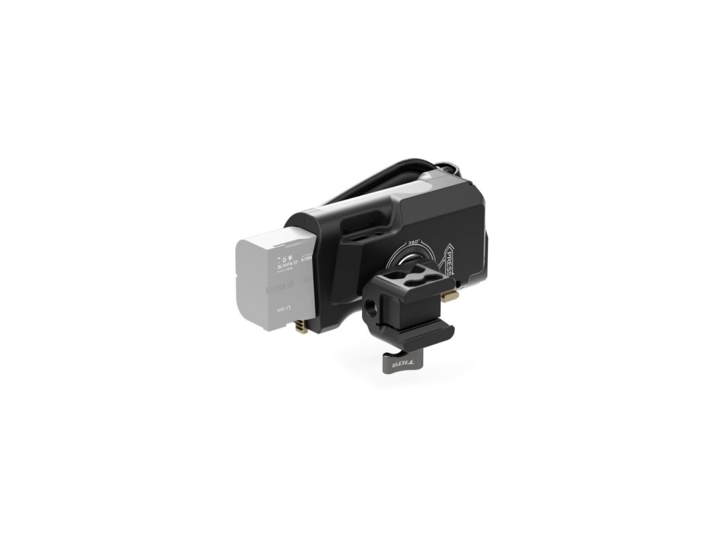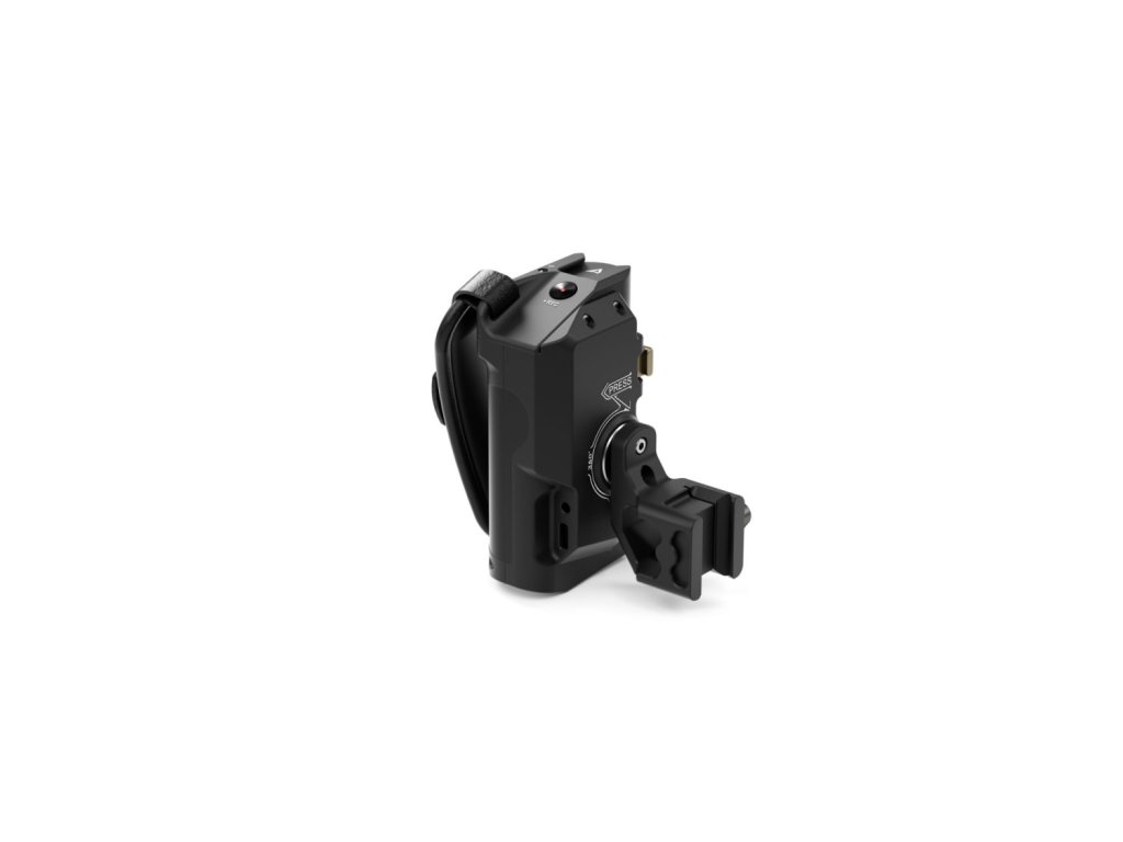 Acest mâner avansat se fixează pe partea stângă a cuștilor de înclinare a camerei. Portul pentru baterie din partea de jos a mânerului vă permite să utilizați bateria Sony F570 pentru a alimenta diverse accesorii prin intermediul ieșirilor de alimentare de 8V USB-C și 12V DC.