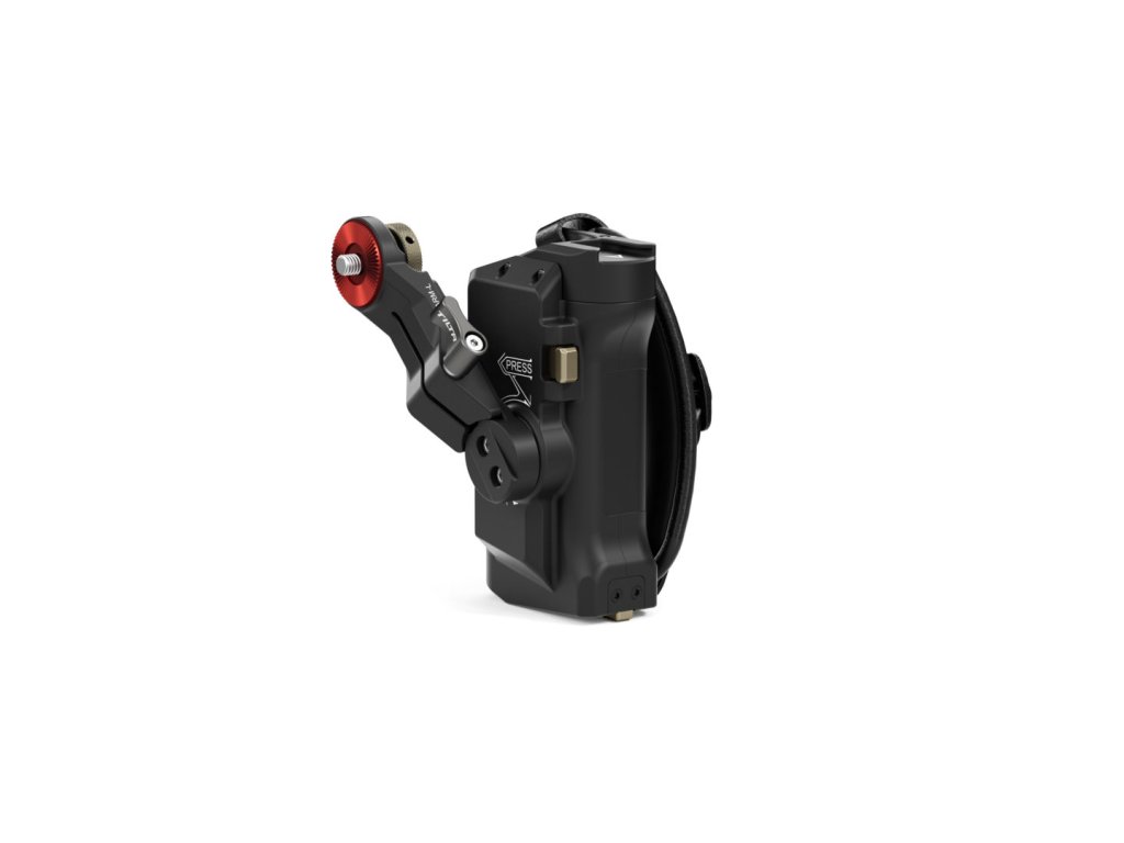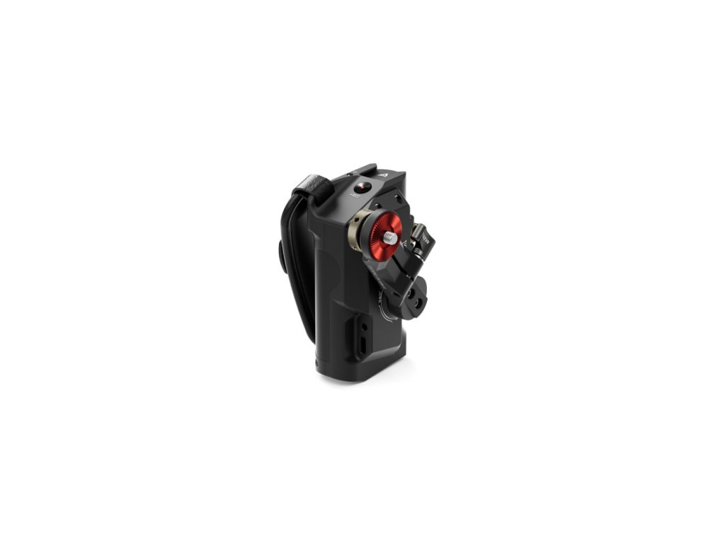 Acest mâner avansat se fixează pe partea stângă a cuștilor de înclinare a camerei. Portul pentru baterie din partea de jos a mânerului vă permite să utilizați bateria Sony F570 pentru a alimenta diverse accesorii prin intermediul ieșirilor de alimentare de 8V USB-C și 12V DC.