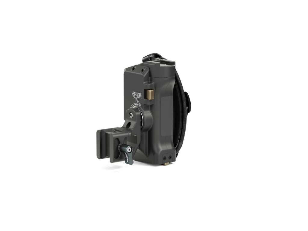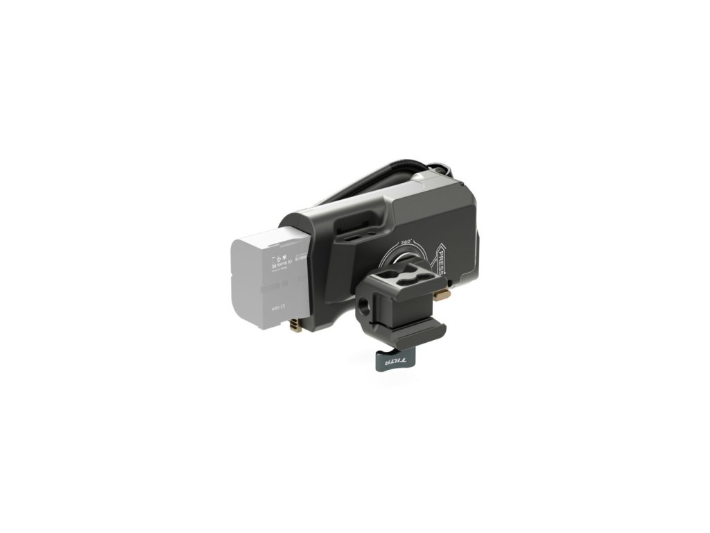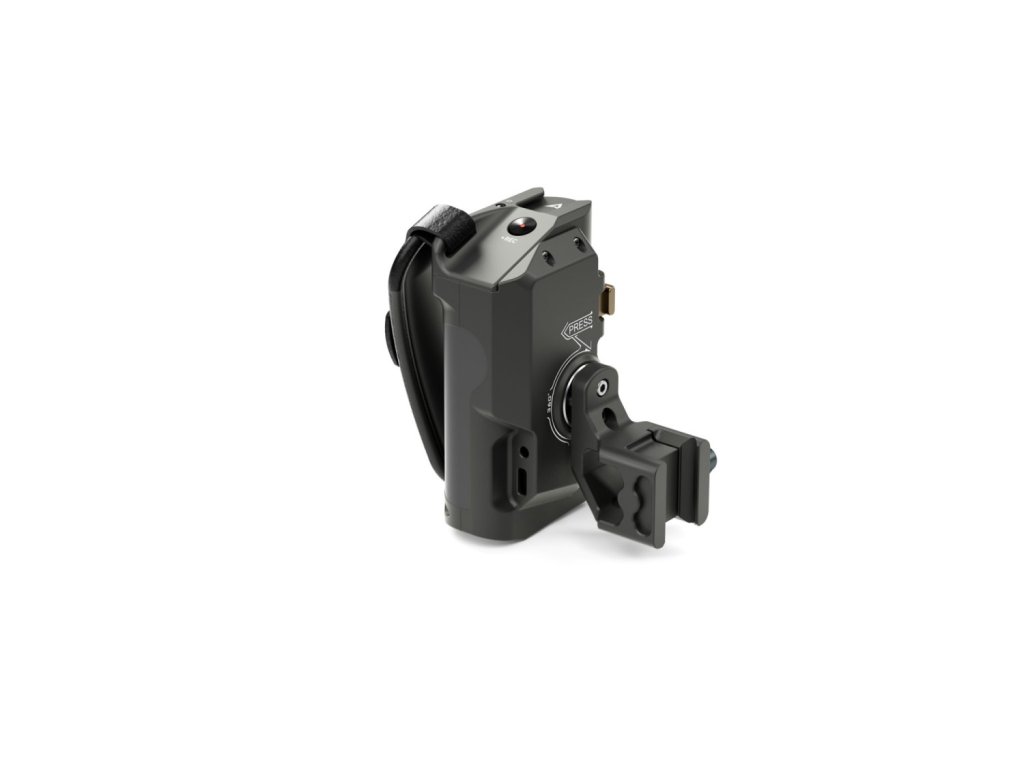 Acest mâner avansat se fixează pe partea stângă a cuștilor de înclinare a camerei. Portul pentru baterie din partea de jos a mânerului vă permite să utilizați bateria Sony F570 pentru a alimenta diverse accesorii prin intermediul ieșirilor de alimentare de 8V USB-C și 12V DC.