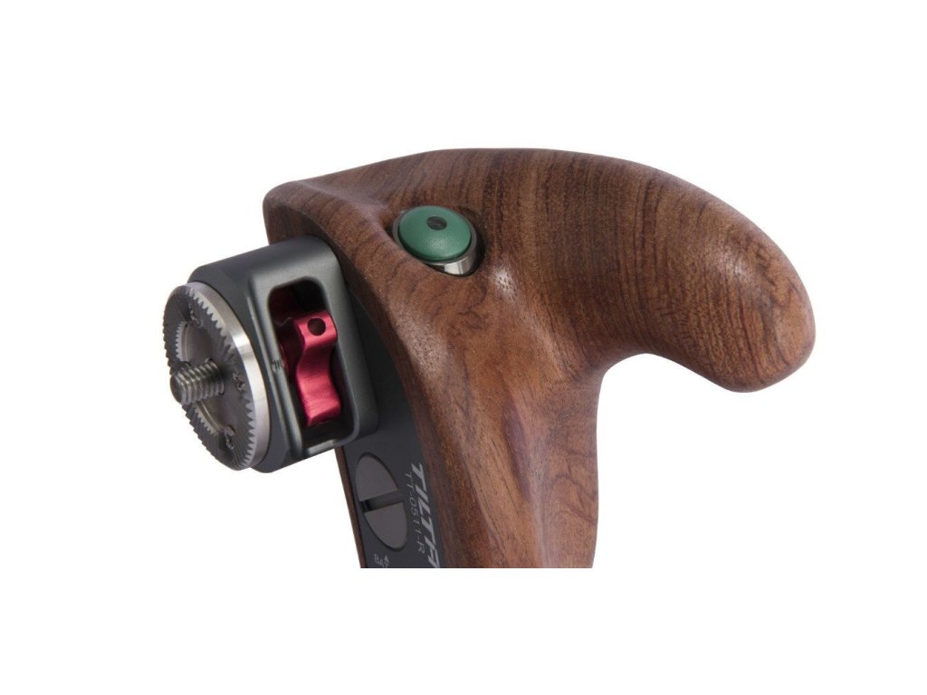 Acest mâner are un design ergonomic care oferă confort maxim atunci când operați camera pe o platformă de cameră Tilta, gimbaluri Gravity G2 și G2X sau într-o configurație montată pe umăr prin intermediul suportului de rozetă Arri standard atașat. Este sculptat manual din lemn masiv de nuc negru și asamblat din aliaj de aluminiu de înaltă calitate frezat CNC, care include un buton Run/Stop care vă permite să controlați funcțiile de înregistrare ale camerei din palma, folosind un cablu R/S opțional. .