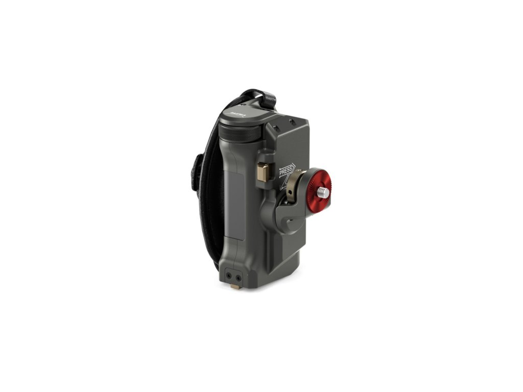 Portul pentru baterie din partea de jos a mânerului vă permite să utilizați o baterie Sony F570 pentru a alimenta motorul Nucleus Nano prin ieșirea de 8V USB-C. O ieșire de 12 V DC este, de asemenea, integrată în mâner.