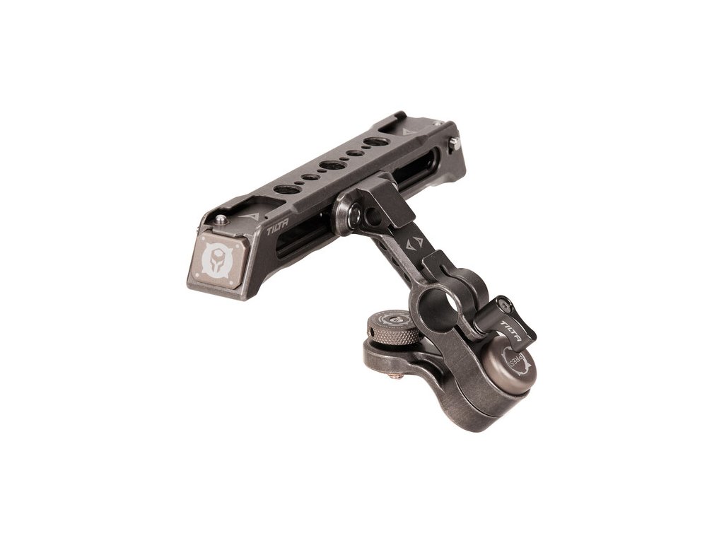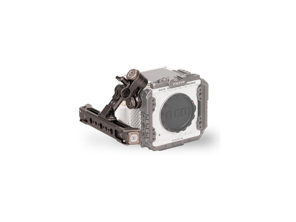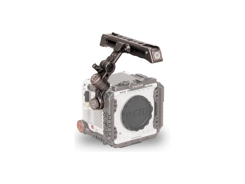 Mânerul superior reglabil, realizat într-o nuanță de gri tactic, este special conceput pentru a se atașa de rozeta situată în partea de sus a cuștii camerei Tilta concepută pentru RED KOMODO. Oferă flexibilitate, permițând utilizatorilor să-și seteze unghiul de înclinare preferat folosind rozeta, oferind în același timp o funcție de rotire la 360° facilitată de un punct de pivotare dedicat. Acest mâner este versatil și permite ajustarea în lateral sau chiar în partea inferioară a cuștii atunci când nu este necesar în partea de sus. În plus, include un suport de pantof cu știft de blocare și un port separat pentru tijă de 15 mm pentru conectarea accesoriilor suplimentare folosind o tijă opțională.