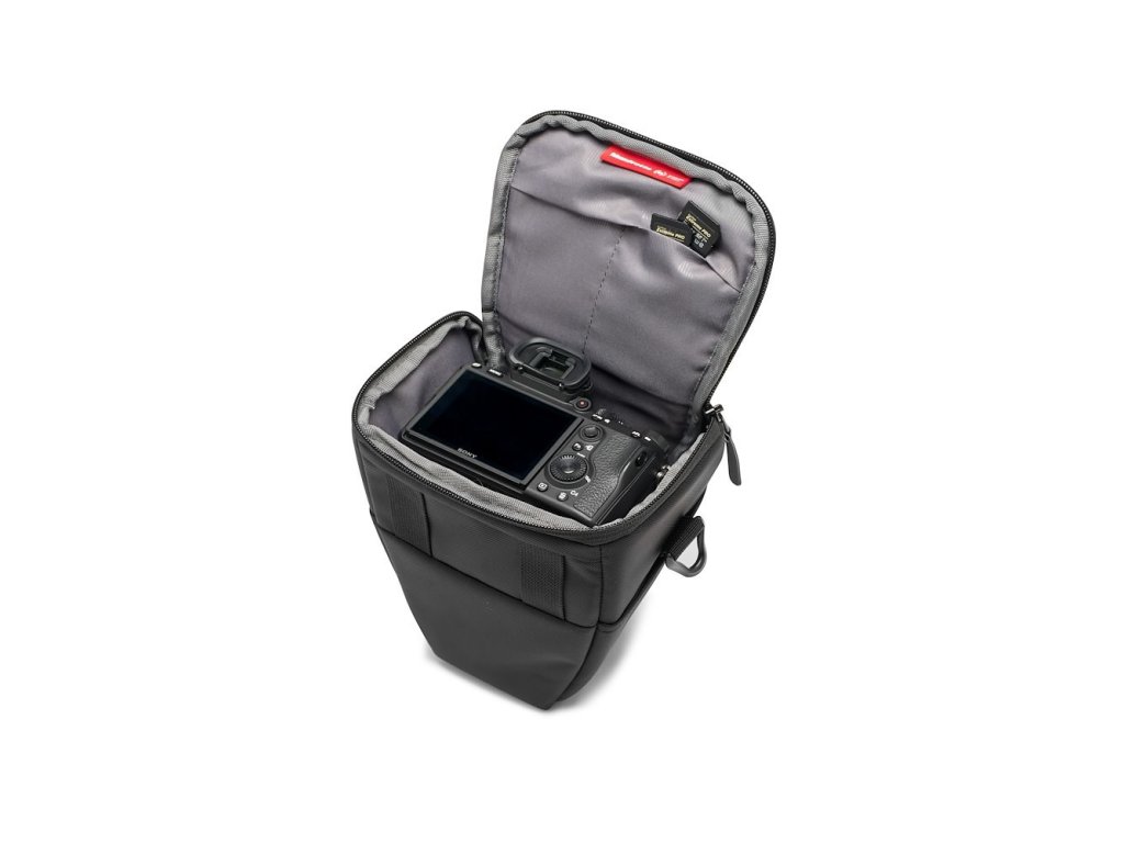 Husa Advanced Holster S III este o husă compactă cu încărcare superioară, concepută pentru camerele mirrorless cu obiectiv full-frame de 16-35 mm f/4 sau mediu. Oferă acces rapid, două buzunare media, un suport frontal pentru trepied și opțiuni versatile de transport, cu curele detașabile căptușite și bucle pentru curea - toate într-o husă ușoară, impermeabilă, de 2 litri, care cântărește 0,27 kg.