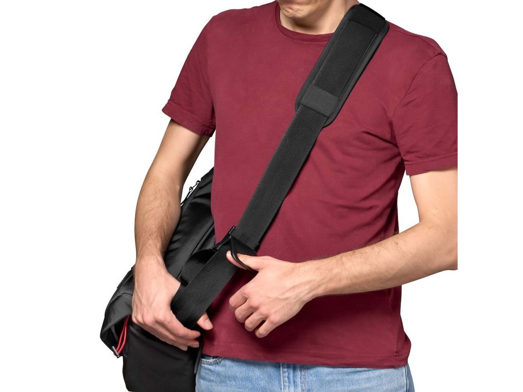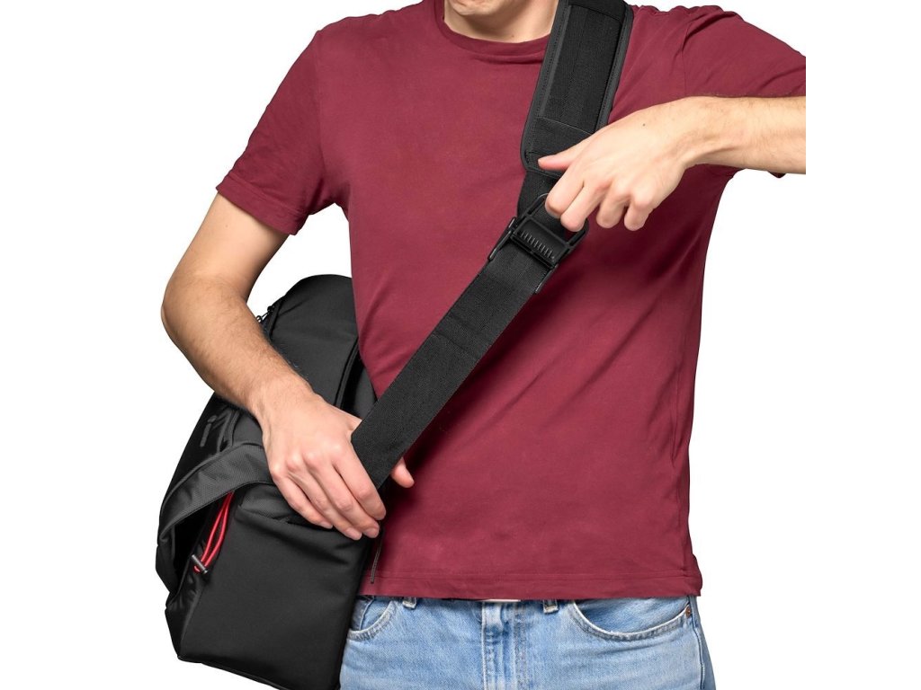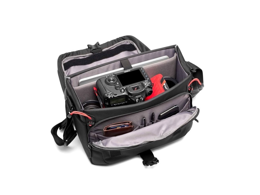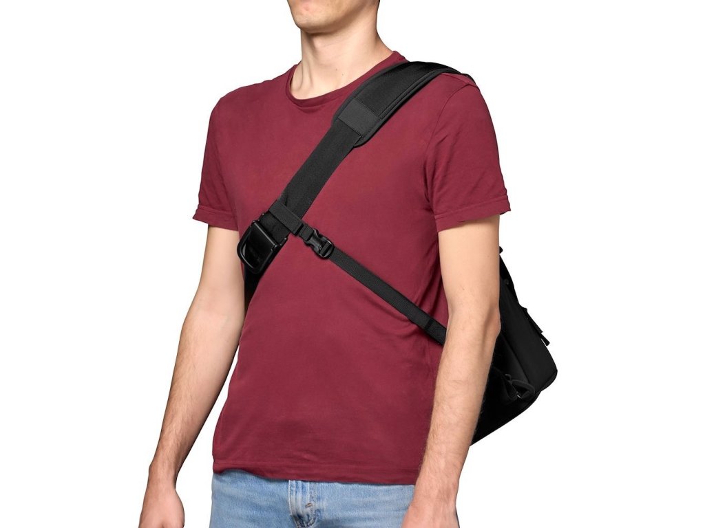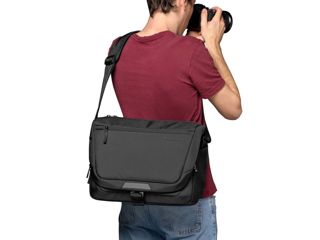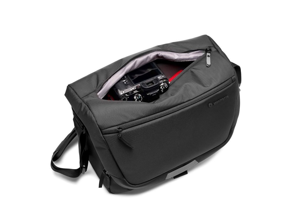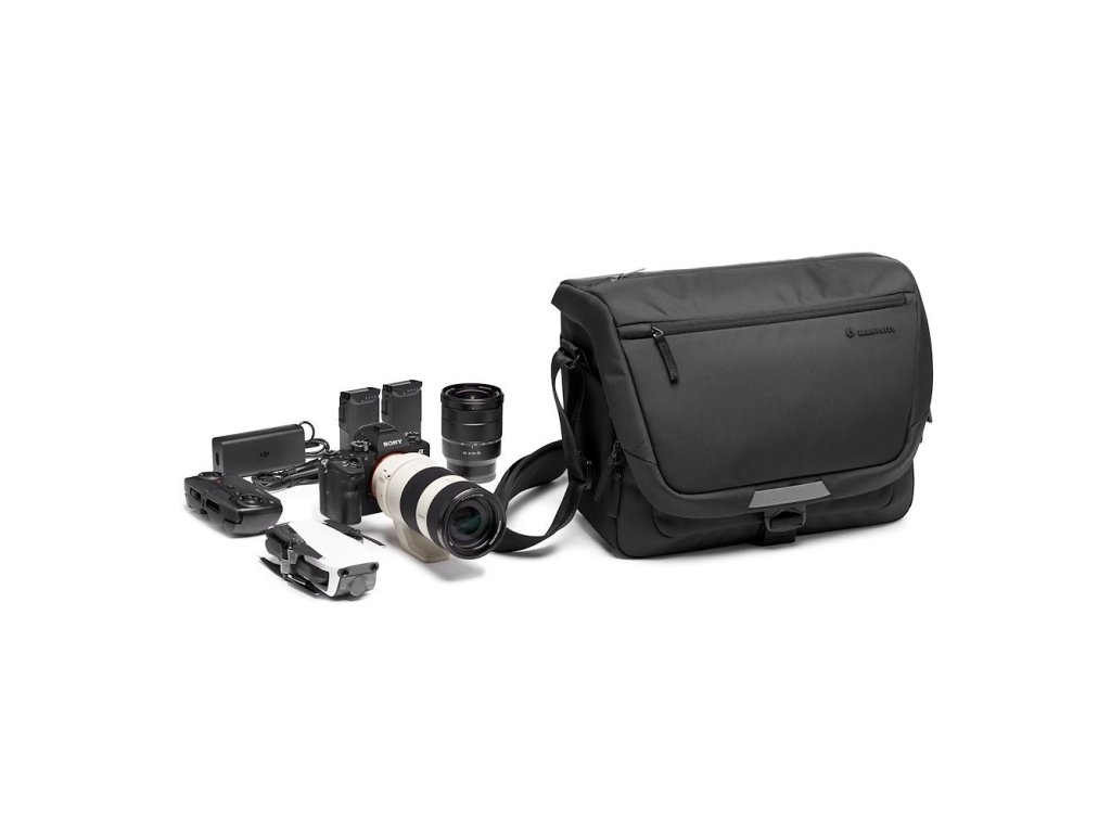 Această geantă exemplifica confortul și comoditatea pentru o fotografiere rapidă. Geanta Advanced Messenger M III pentru DSLR și CSC vă oferă tot ce aveți nevoie. Această geantă vă permite să potriviți o cantitate mare de echipament pentru cerințele oricărei fotografii. Această geantă are capacitate pentru camere și obiective, precum și un trepied mic atașat cu două curele elastice interne.